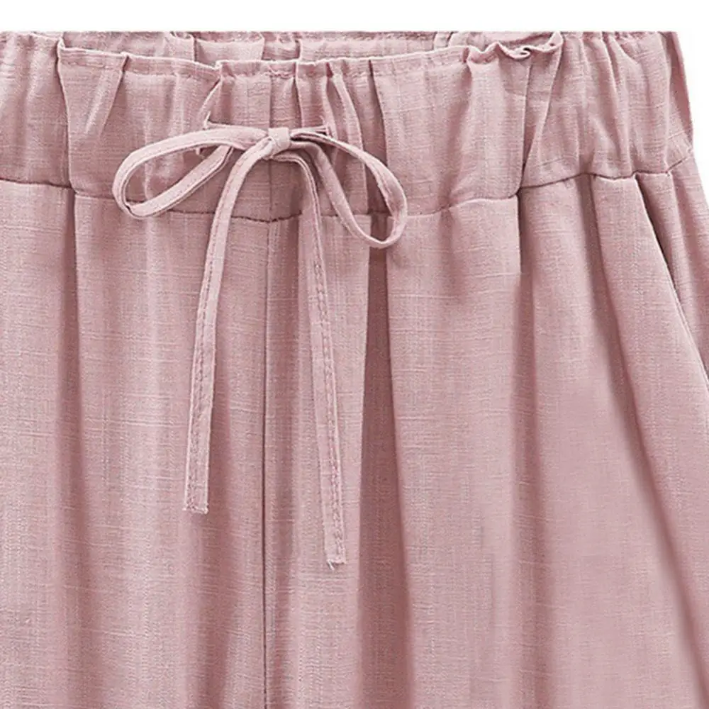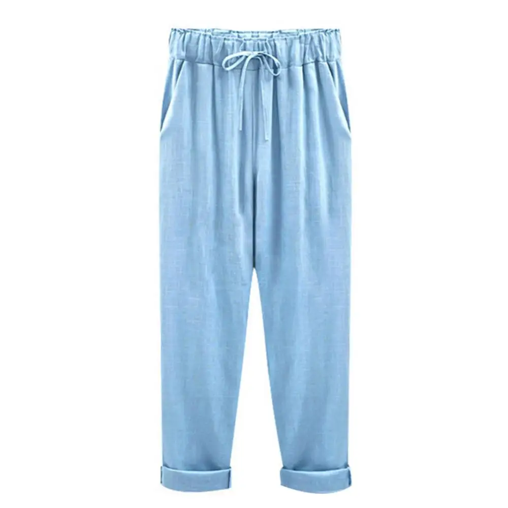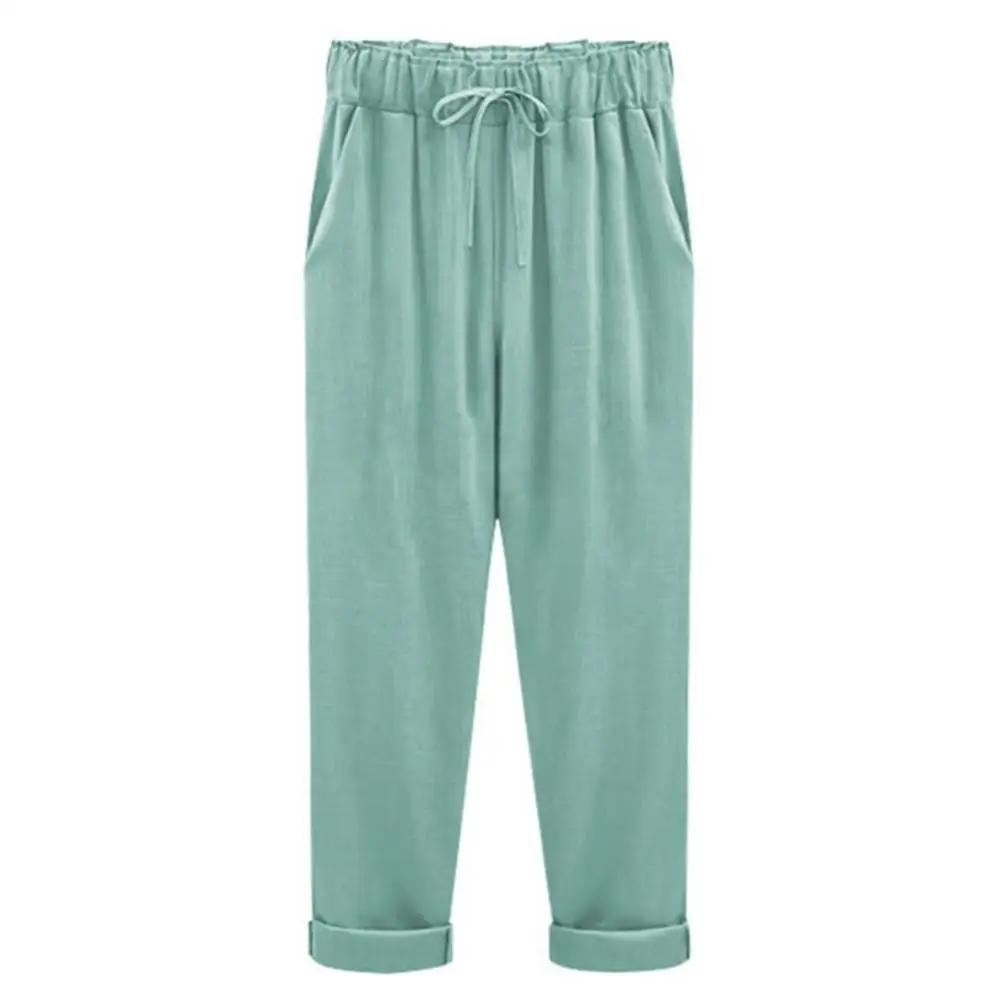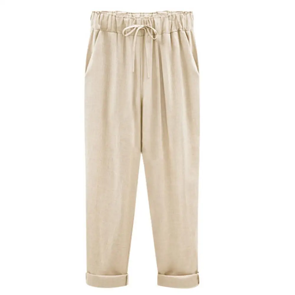 40% Популярные однотонные хлопковые льняные укороченные брюки, свободные женские шаровары с Кулиской