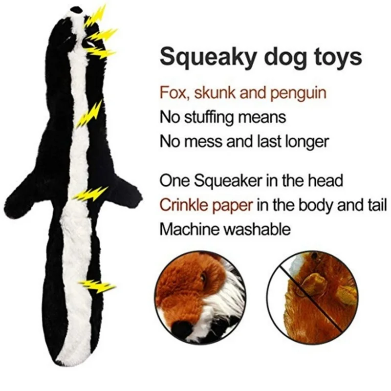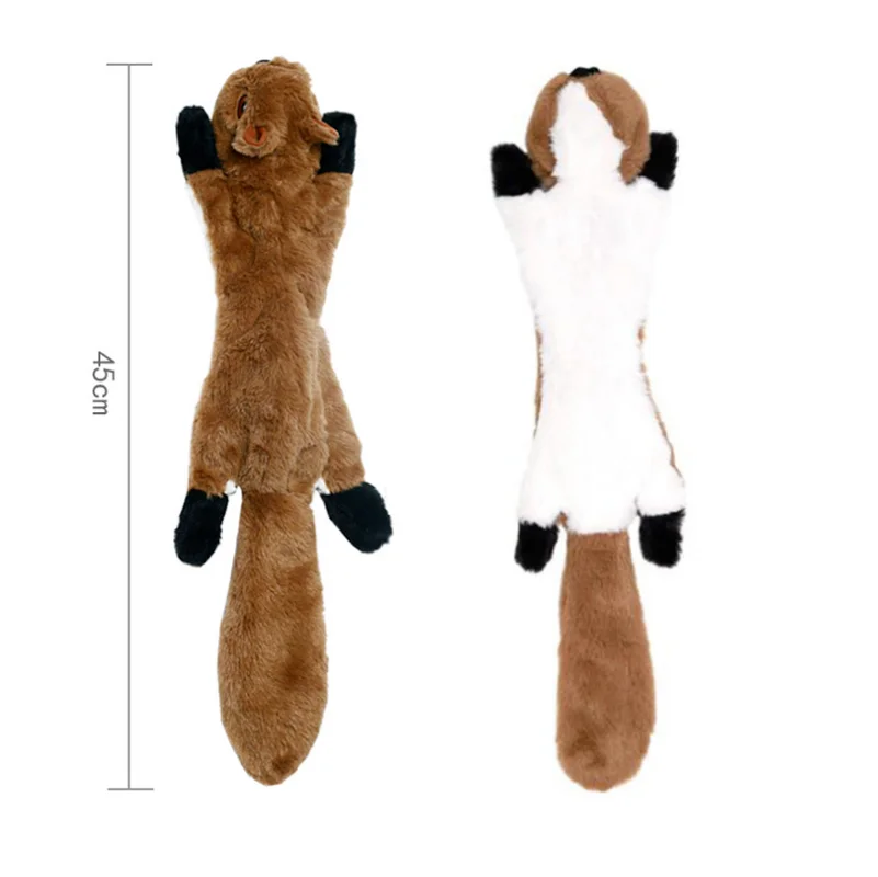 Игрушка очень мягкая, приятная на ощупь, в голове и хвосте пищалки, собака довольна.