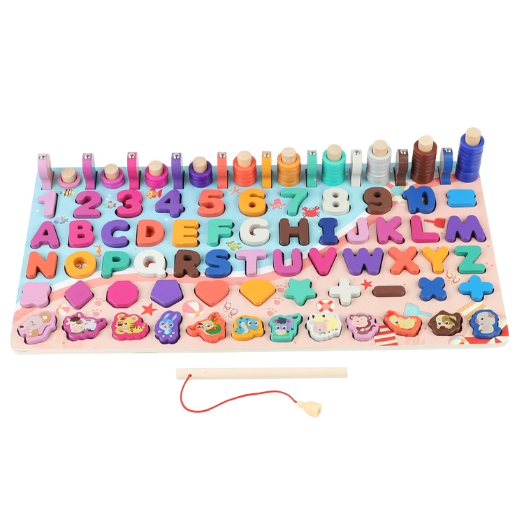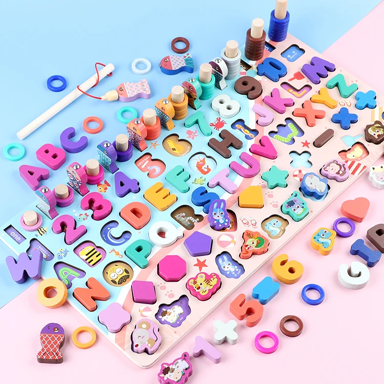 Деревянная головоломка Монтессори в форме s-цифр, игрушки для малышей, форма сортировщика, подсчет, игра для рыбалки, Детская математическая Штабелируемая головоломка