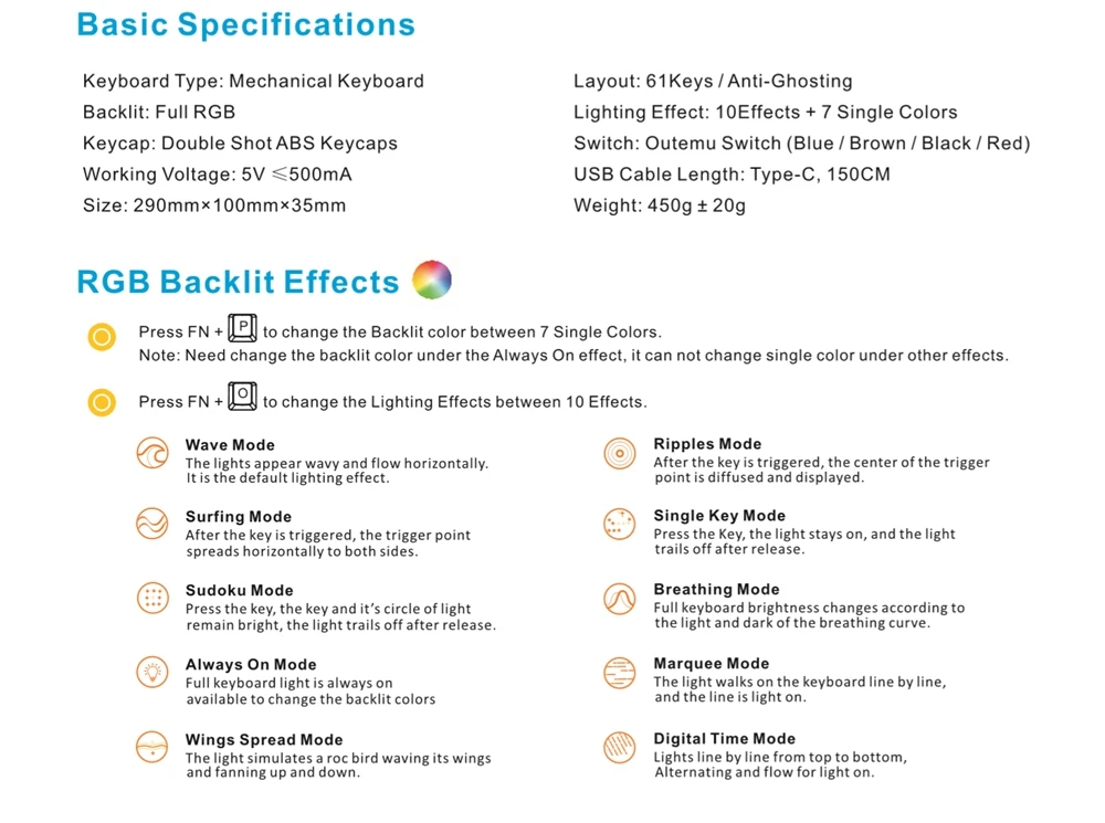 60% ультра-компактный эргономичный дизайн: Эта Механическая игровая клавиатура с 61 клавишей делает ваш рабочий стол более аккуратным, экономит место на рабочем столе, оставляя больше места для движения мыши, больше всего подходит для FPS геймеров.