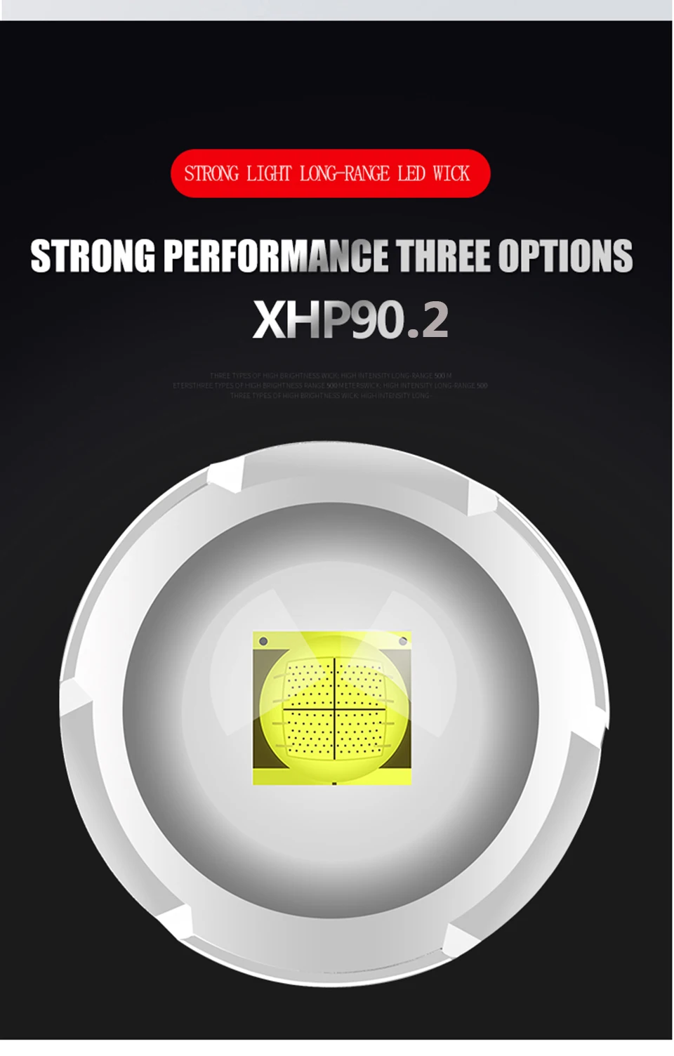 Светодиодный фонарик XHP90.2, перезаряжаемый внешний аккумулятор 18650 26650, алюминиевый фонарик, масштабируемый водонепроницаемый фонарь, высокое качество, 4 ядра