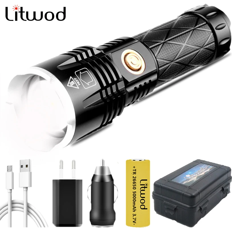 Высококачественный светодиодный фонарик XHP100 с микро-USB, перезар...