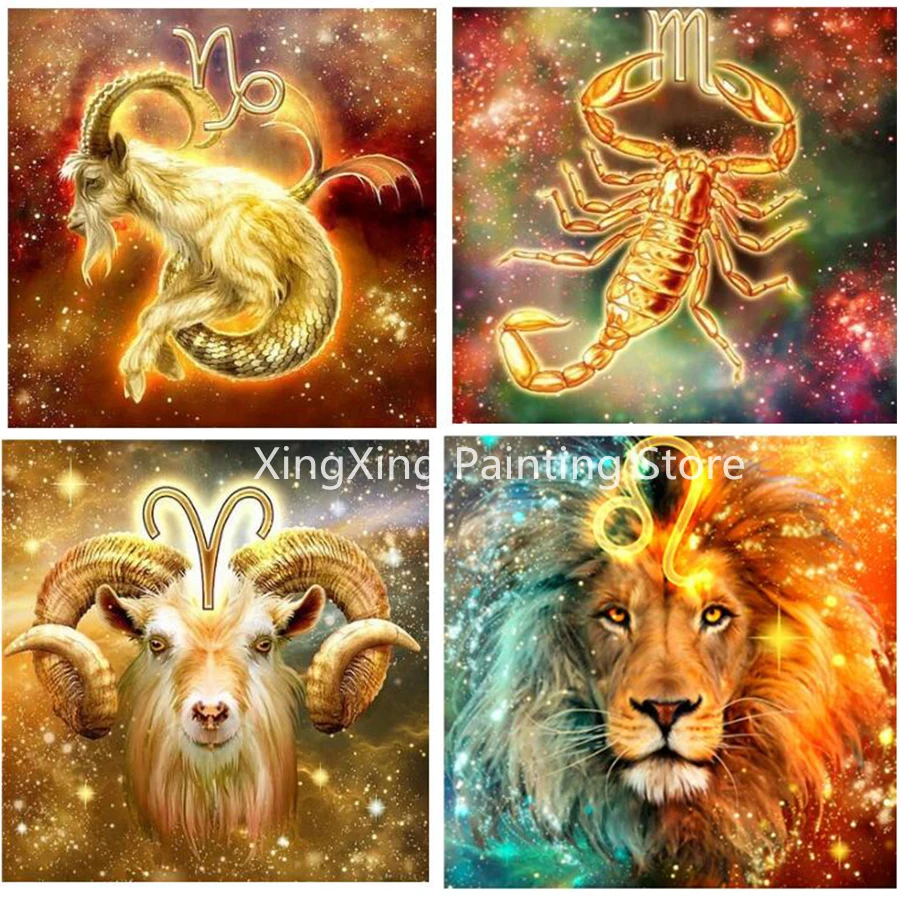 Алмазная вышивка "сделай сам", Лев, овечка, скорпион 5d, алмазная живопись, вышивка крестиком, картина стразы, Алмазная мозаика, созвездия