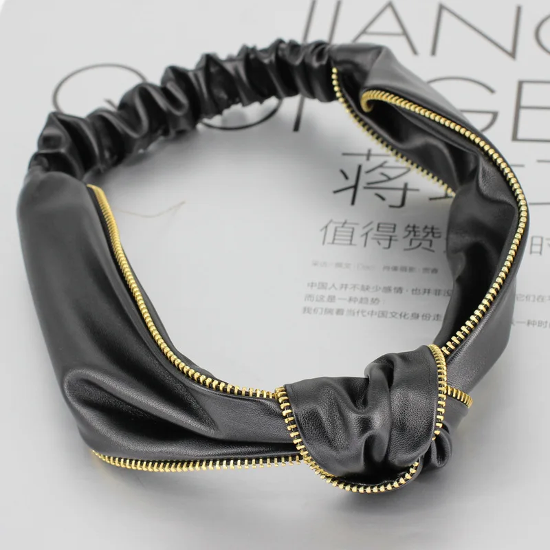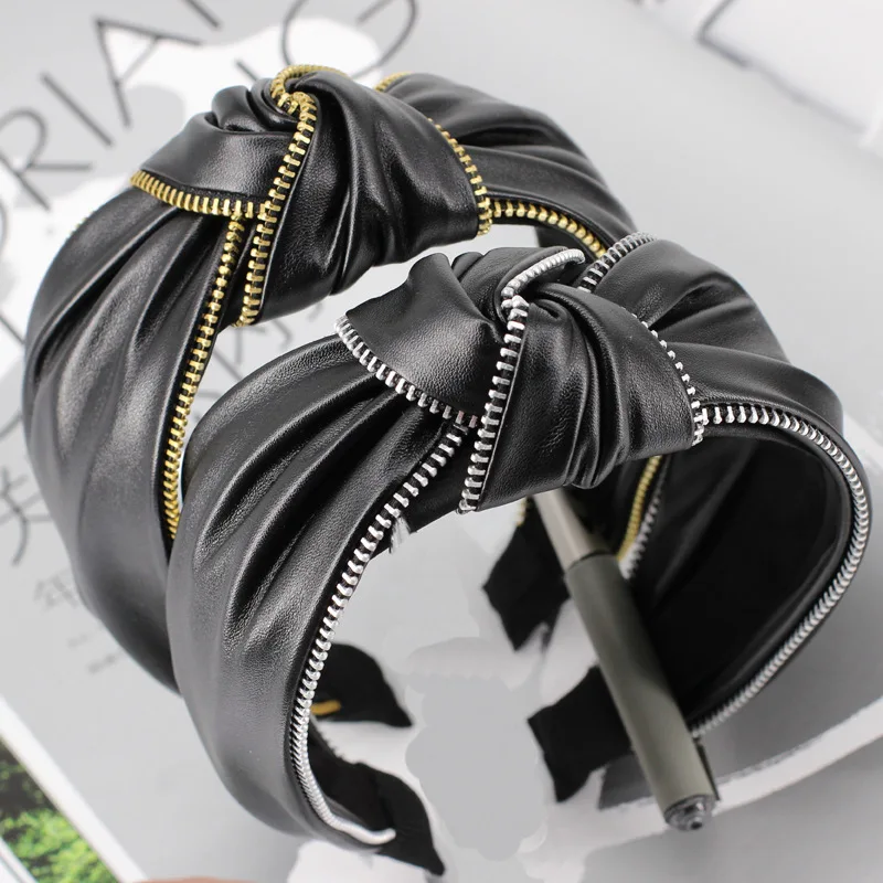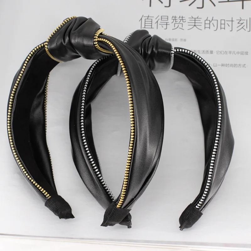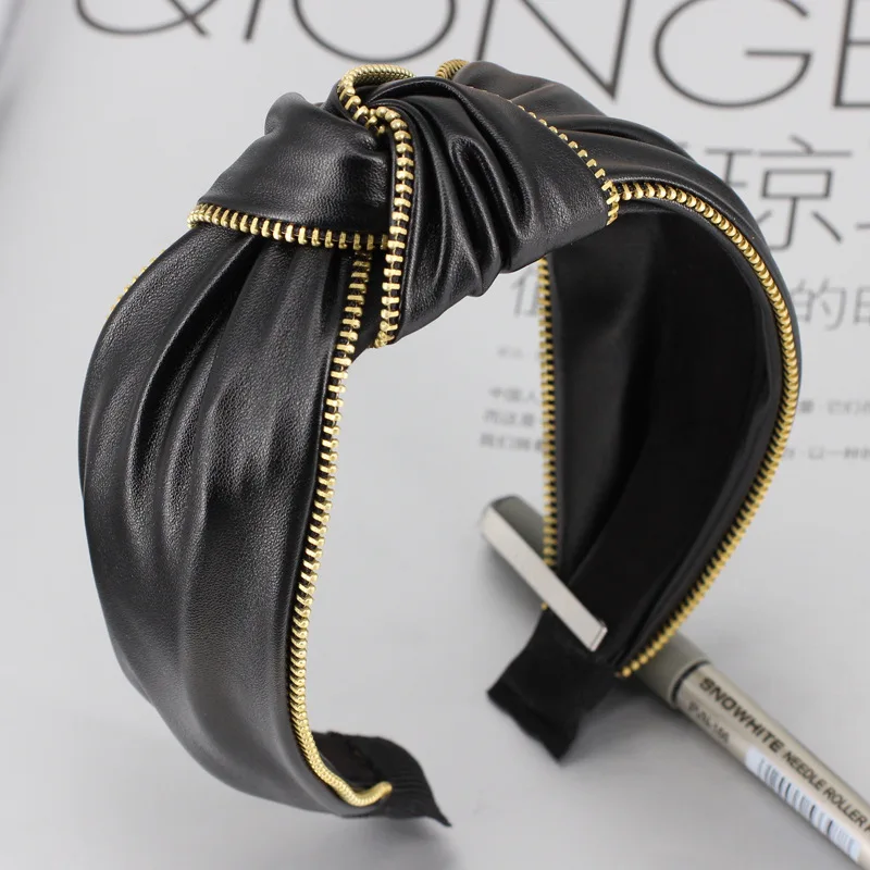 Аксессуары для волос в Корейском стиле, искусственная кожа, искусственная кожа, цепь на молнии, широкий край, головной узел B510