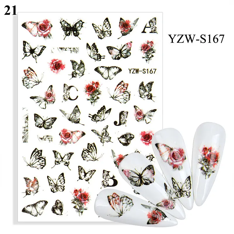 1 лист акварельные бабочки клейкие наклейки для ногтей синие Черные Цветы бабочки украшения для ногтей 3D наклейки маникюрная Фольга для ногтей