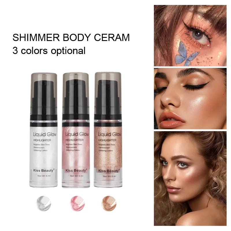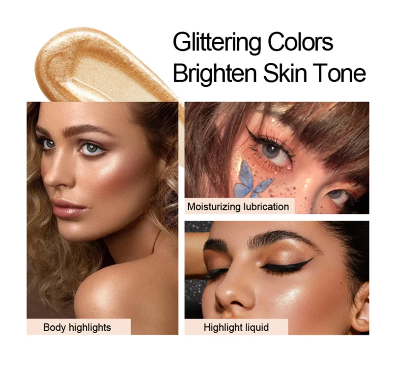 4 цвета, 20 мл, металлик, жидкий Хайлайтер для лица и тела, блестящ...