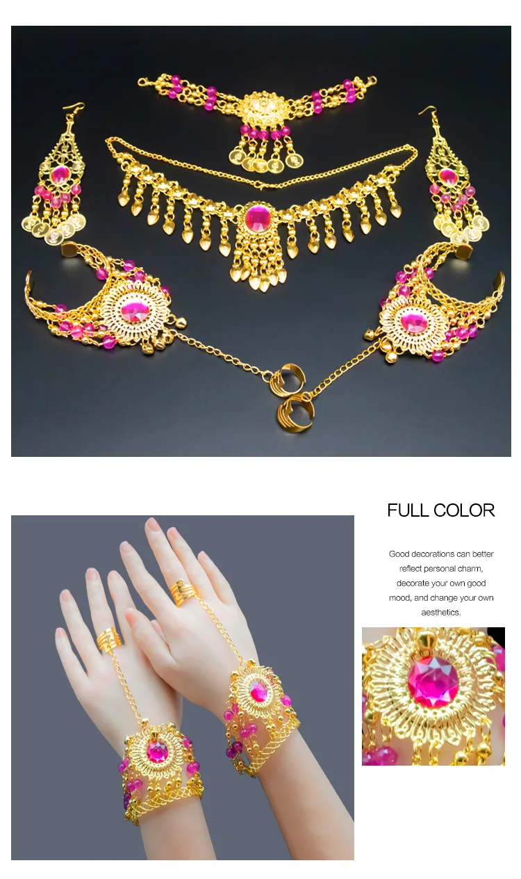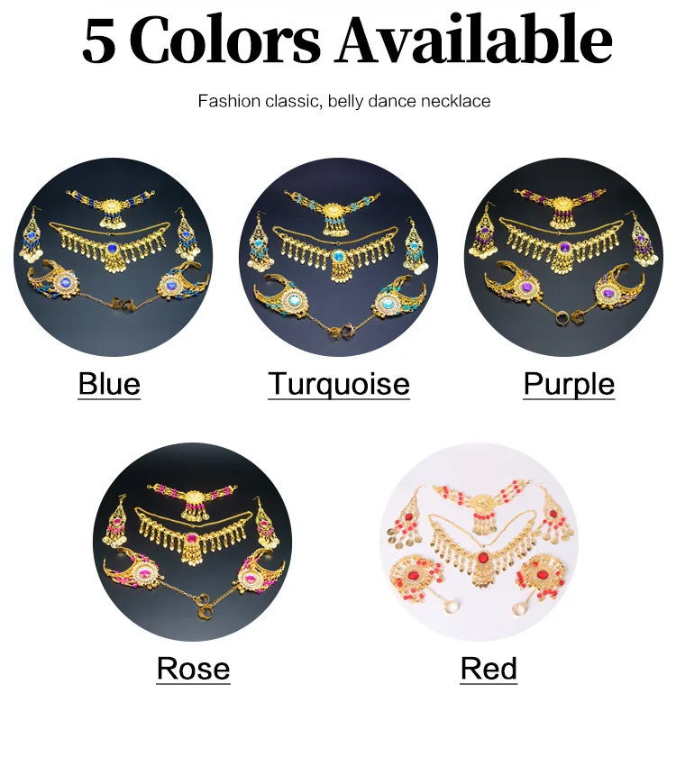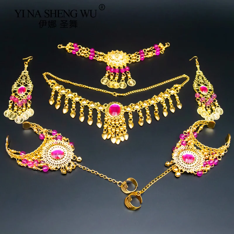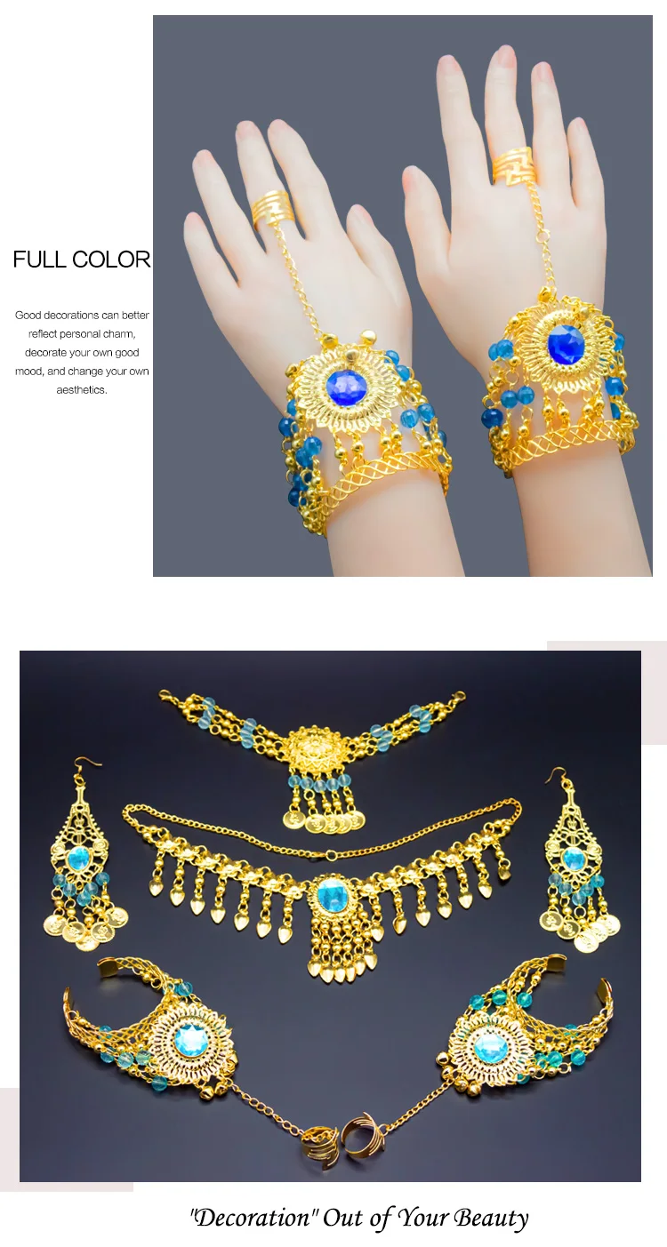Набор женских украшений в индийском стиле для танца живота, ожерелье, серьги, набор из 6 предметов