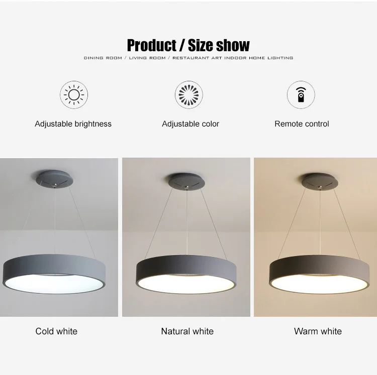 Круглые подвесные светильники в скандинавском стиле, серые, с регулируемой яркостью, для столовой, спальни, офиса, кабинета