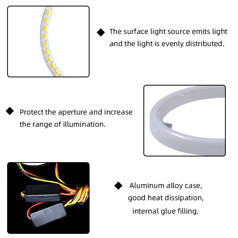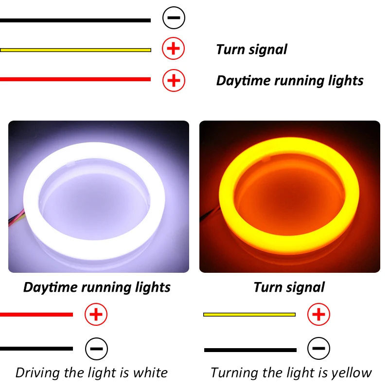 Автомобильные светодиодные фары ангельские глазки, 2 шт., дневные ходовые огни, автомобильные гало, кольцевые светодиодные ангельские глазки, дневсветильник, сигнал поворота, белый, желтый