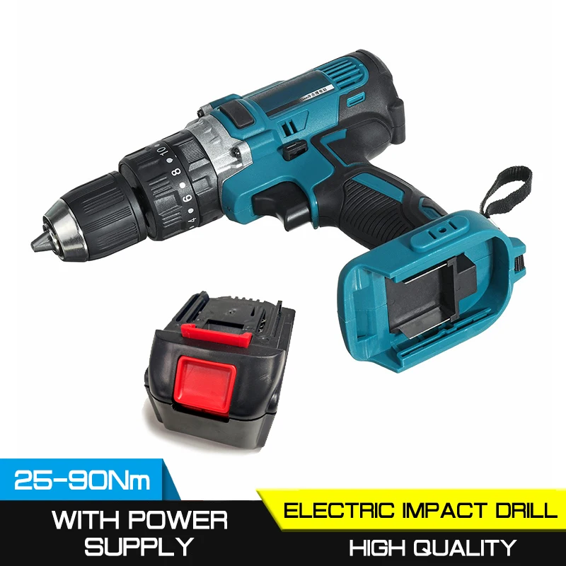 Технические характеристики Адаптирован к 18V батареи Makita Цвет: синий + черный Максимальный крутящий момент: 25-90 нм Без скорости нагрузки: 0-450р/мин, 0-1500р/мин Размер патрона: 13 мм Функция плоского сверла/функция молотка/функция отвертки 3 в 1 Тип батареи: 18 в Емкость аккумулятора: 3000 мАч
