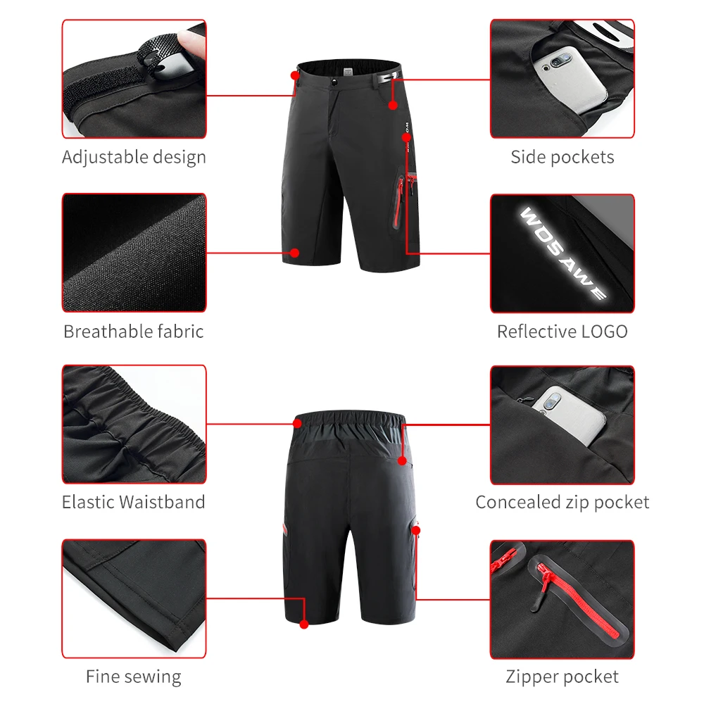 WOSAWE Для мужчин горный велосипед Велоспорт шорты дышащие летние велосипедные короткие гоночные шорты MTB DH шорты для езды на велосипеде