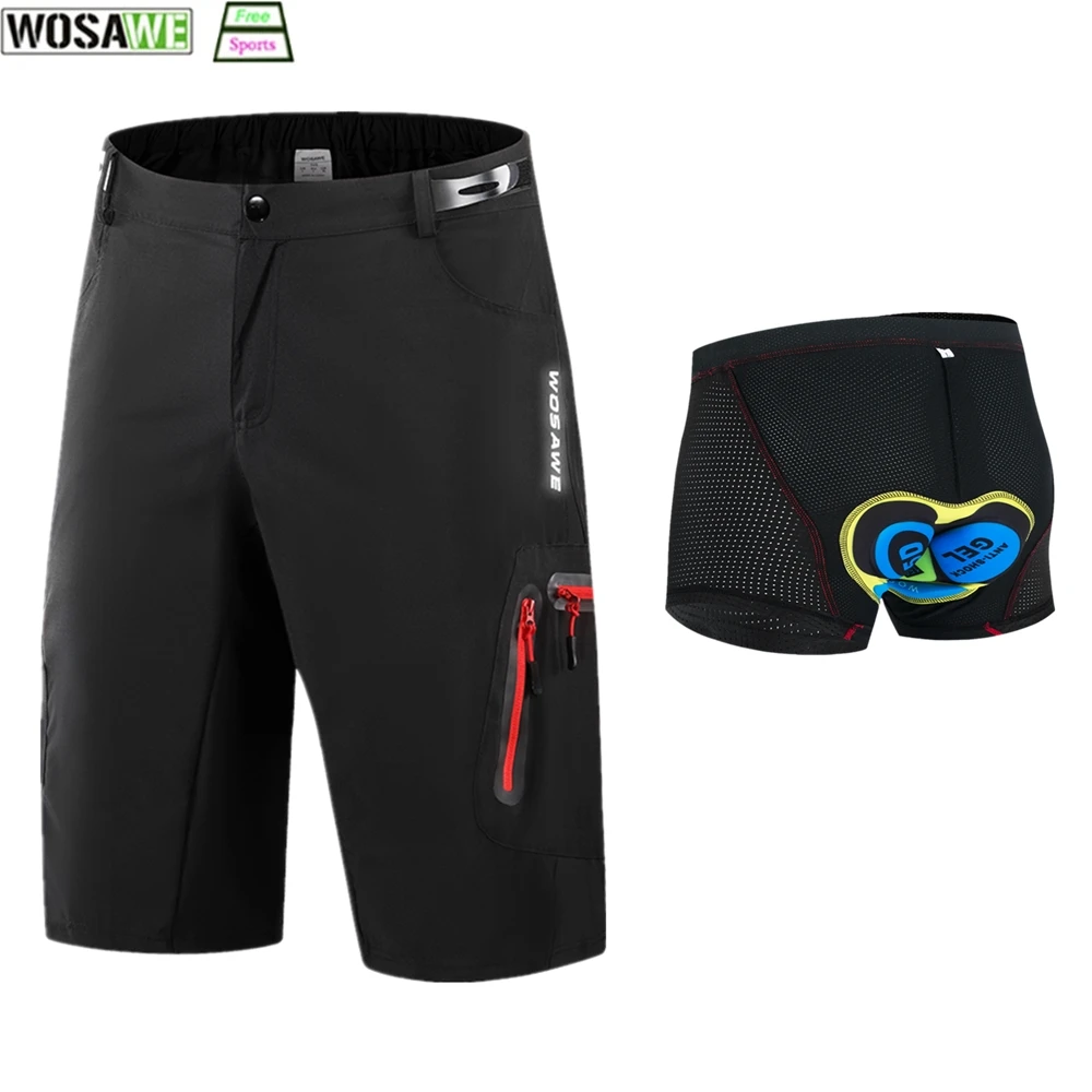 Шорты WOSAWE Мужские велосипедные с гелевыми вставками, свободные короткие штаны для горного велосипеда, для езды на горном велосипеде, нижнее белье, летние