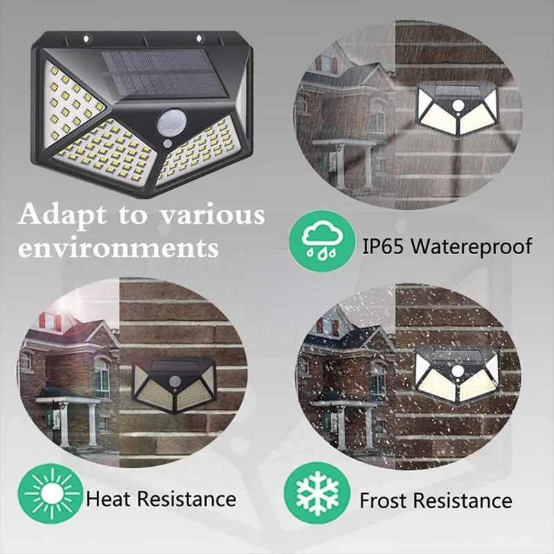 100 светодиодный светильник на солнечной батарее, уличсветильник ильник на солнечной батарее, водонепроницаемый, с датчиком движения, для украшения сада