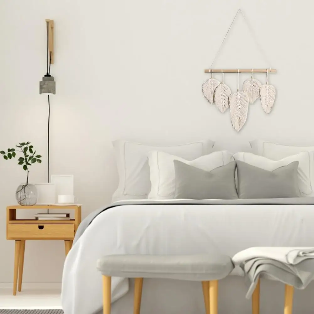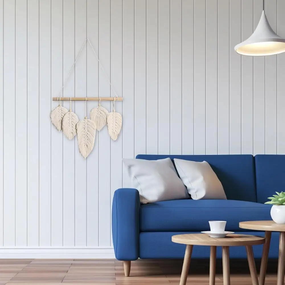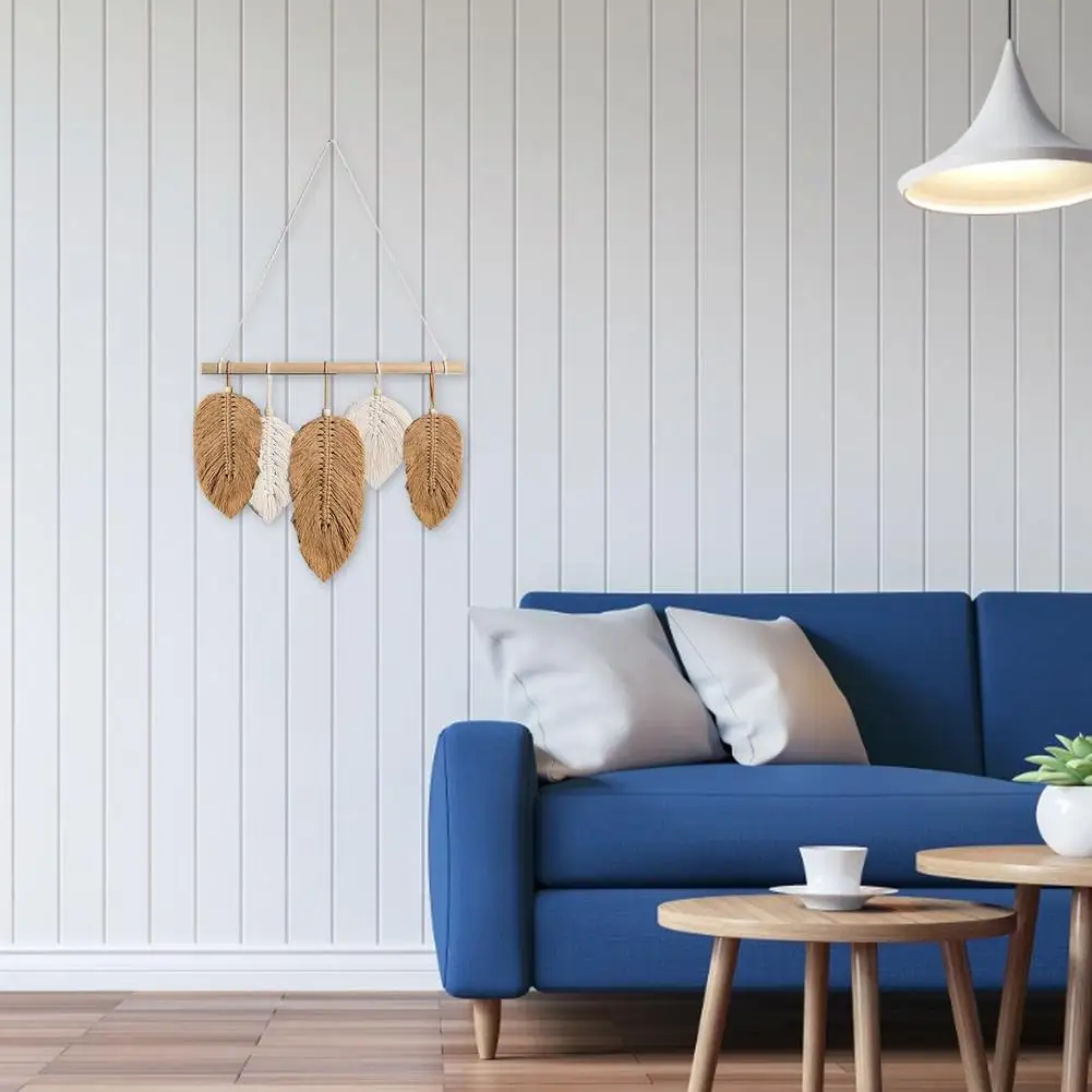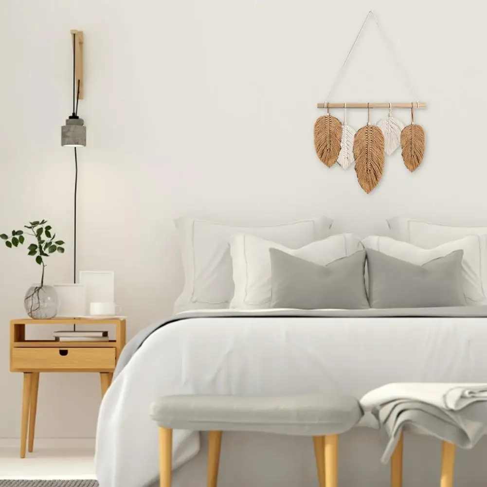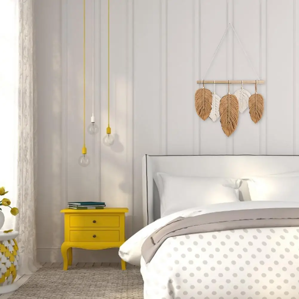 Макраме настенная подвеска ручной работы перо хлопчатобумажные тканые листья для гостиной подвесные висячие двери в стиле бохо Декор настенный гобелен