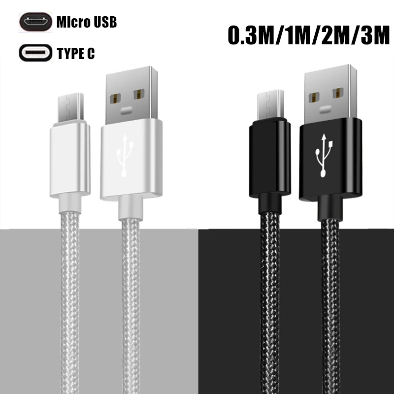 Кабель Micro USB Type-C в оплетке, шнур для зарядки и синхронизации данных 0,3 м1 м2 м3 метра для Samsung, Xiaomi, Huawei, универсальный мобильный телефон на Android
