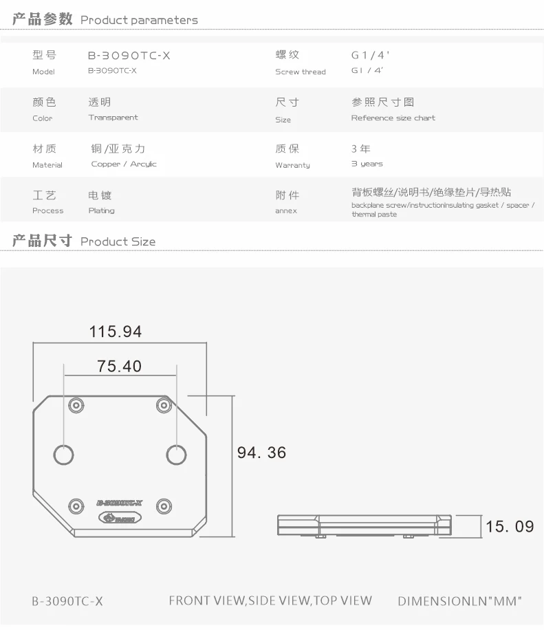 Bykski GPU Active Backplate Block Universal For All RTX 3090 Series...