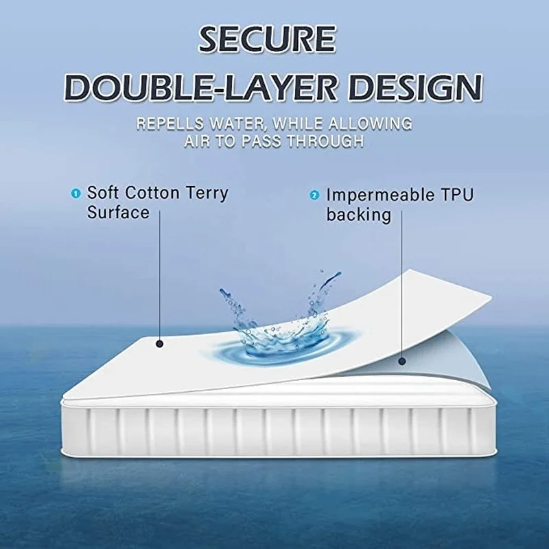 ❤Ультрамягкий и бесшумный: специально разработанная Мембрана из ТПУ покрыта сверхмягким махровым покрытием из 80% хлопка, что делает ее мягкой и удобной даже для оголенной кожи. Водонепроницаемая прокладка из ТПУ изготовлена из эластичного материала премиум-класса, что гарантирует отсутствие дрожания или пластикового ощущения, чтобы сорвать ваш ценный сон.