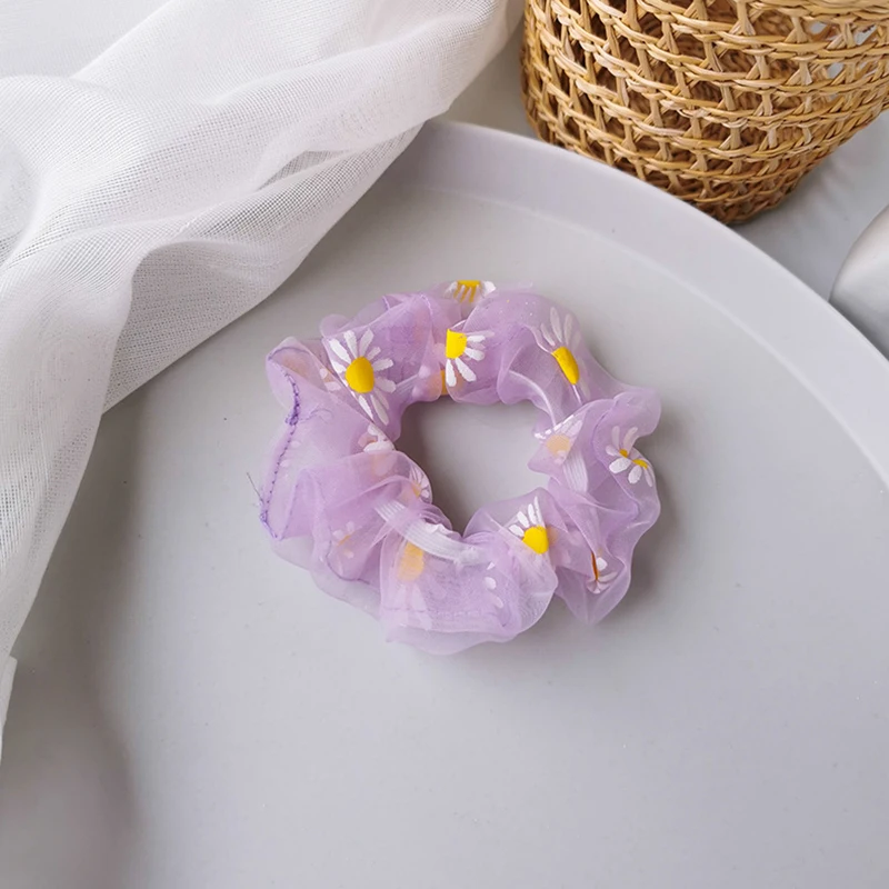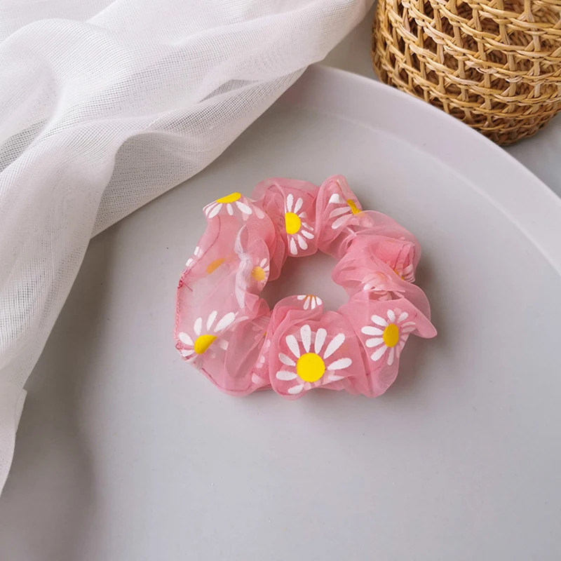 Милая сетчатая резинка для волос с принтом маргариток маленькие романтические розовые резинки для волос Прозрачная Тюлевая органза заколка для волос аксессуары для волос