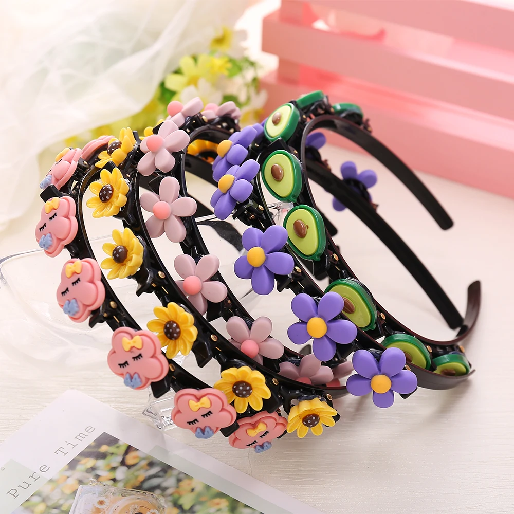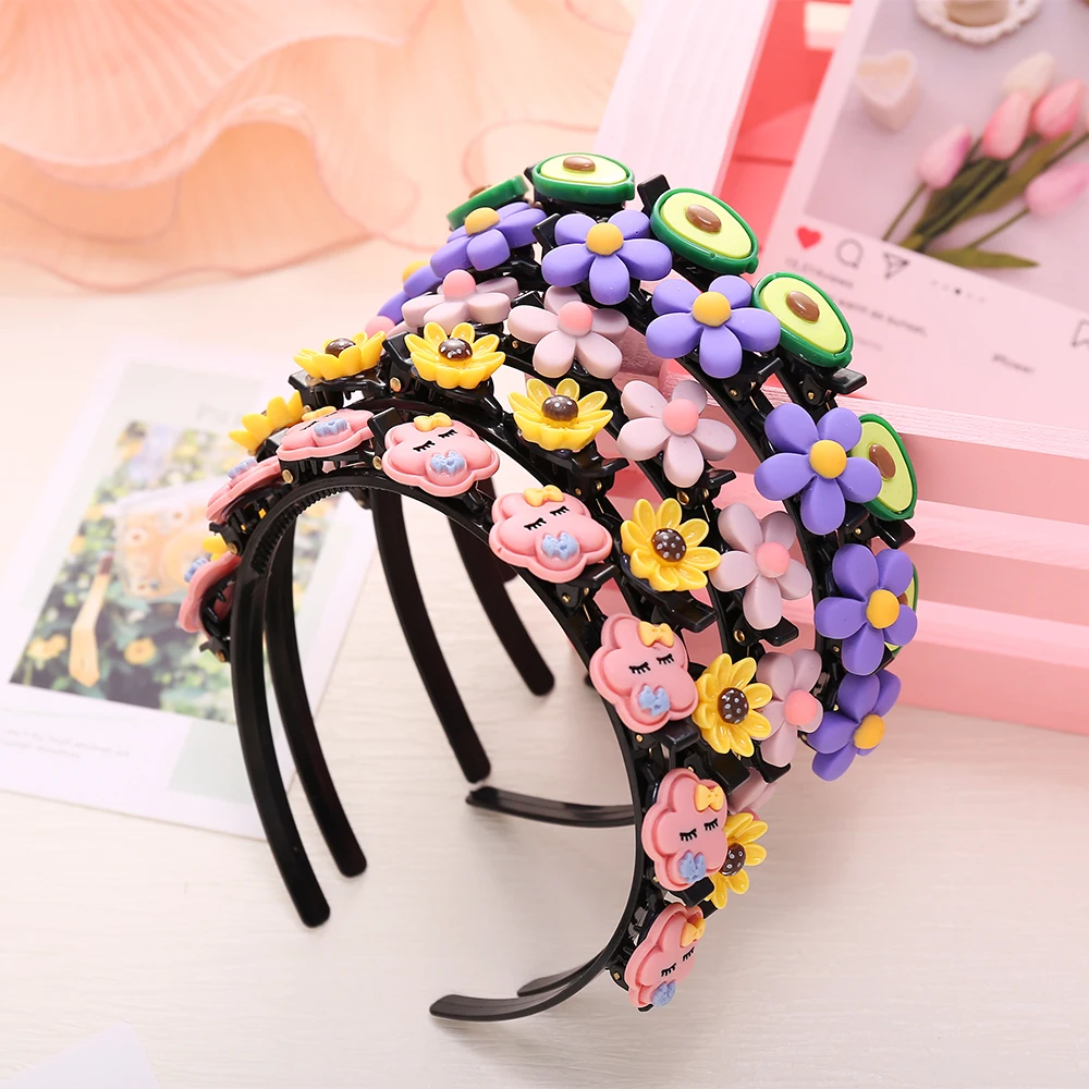 Повязка для волос двухслойная с цветами Женская, Модный милый Плетеный пластиковый ободок, вязаный головной убор для девушек, аксессуары для волос