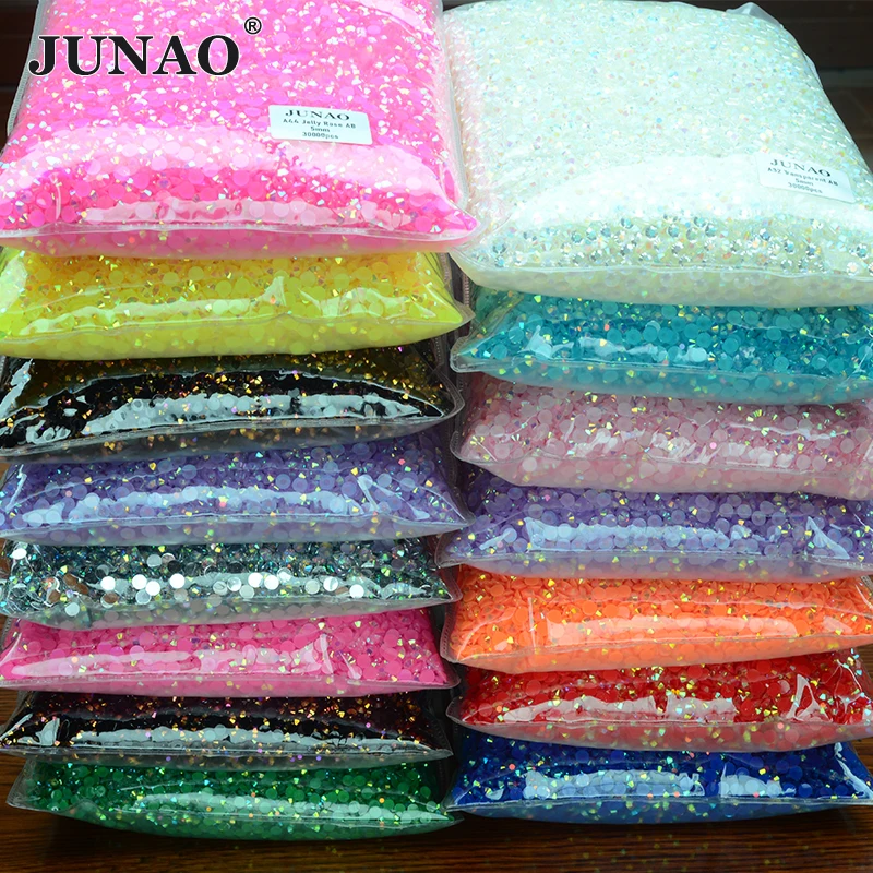 JUNAO/оптовая продажа, 2 мм, 3 мм, 4 мм, 5 мм, 6 мм, сапфир, AB, желе, Стразы без горячей фиксации, оптом, посылка с плоским основанием, Стразы для ногтей