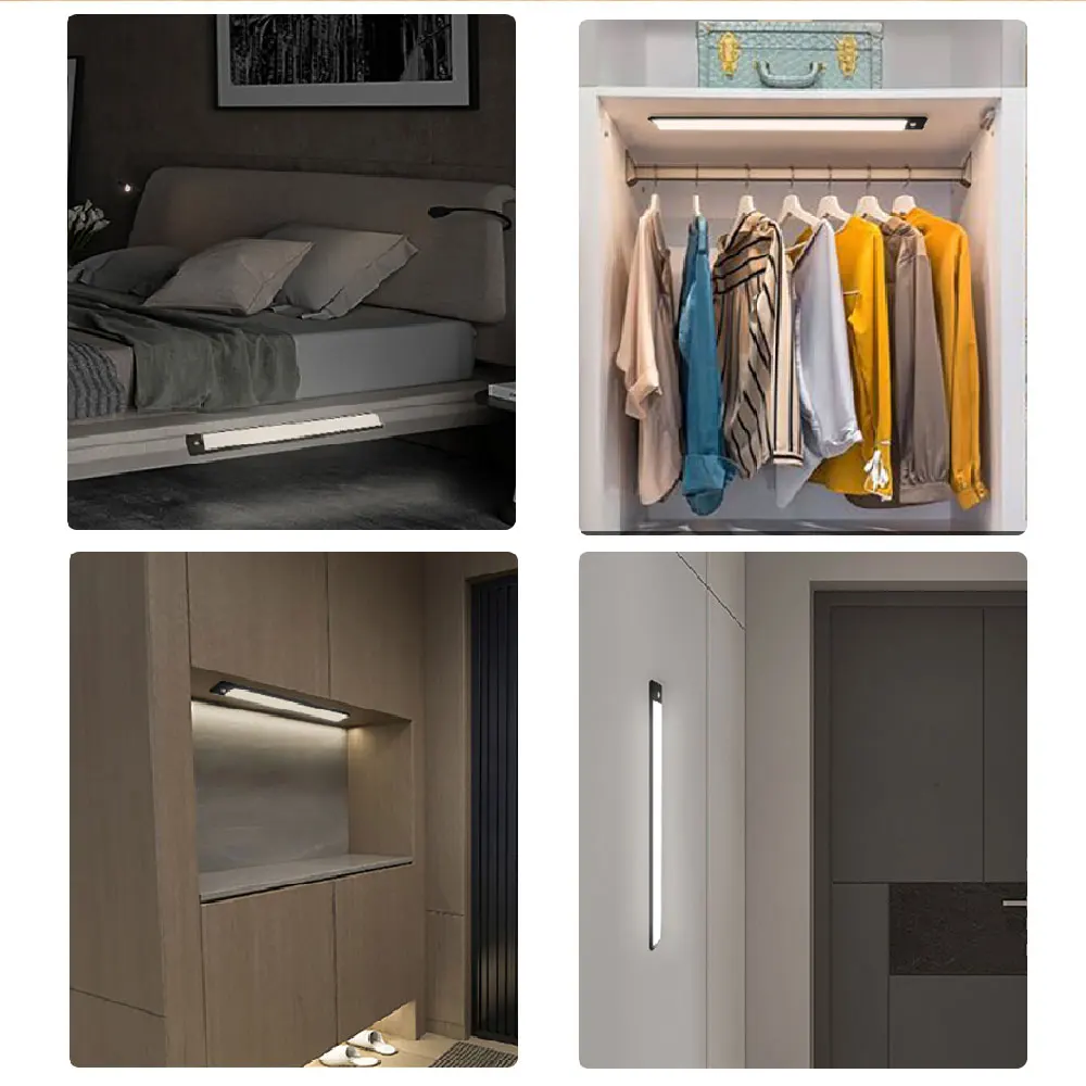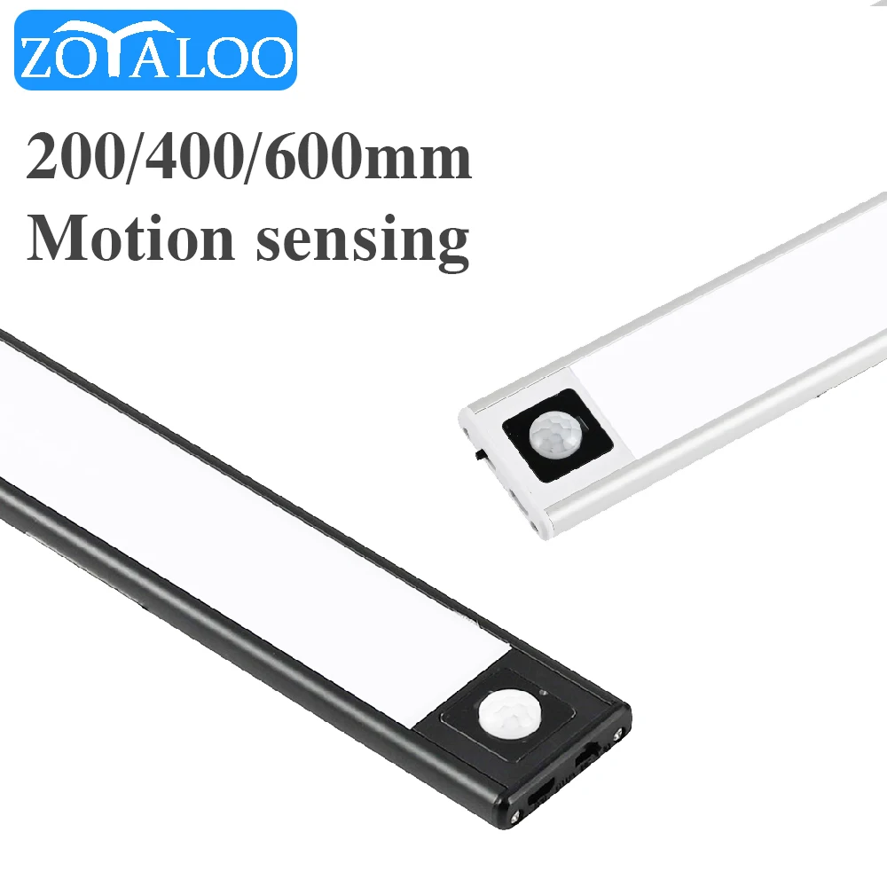 USB светодиодное освещение для шкафа 204060 см, 3 режима, Пассивный инфракрасный датчик движения светодиодный ное перезаряжаемое черное алюминиевое освещение для кухонных шкафов, освещение