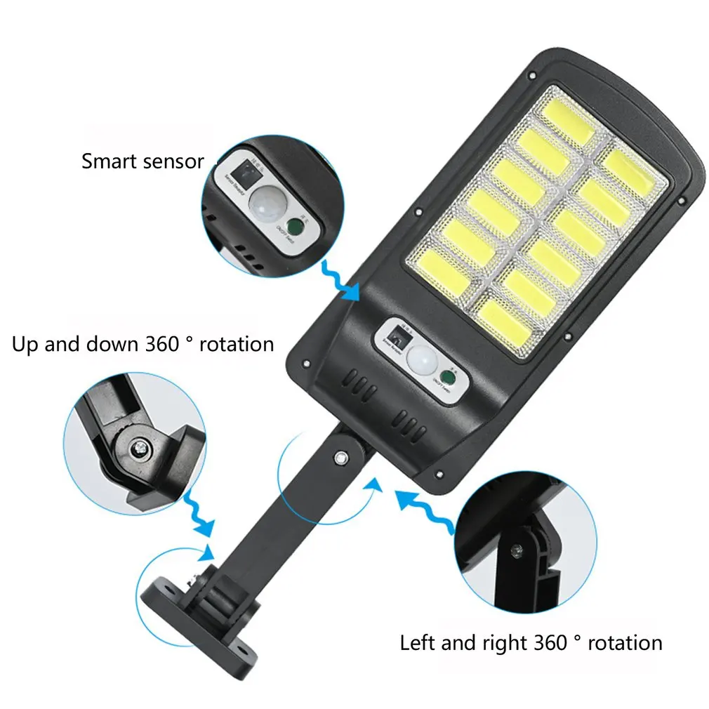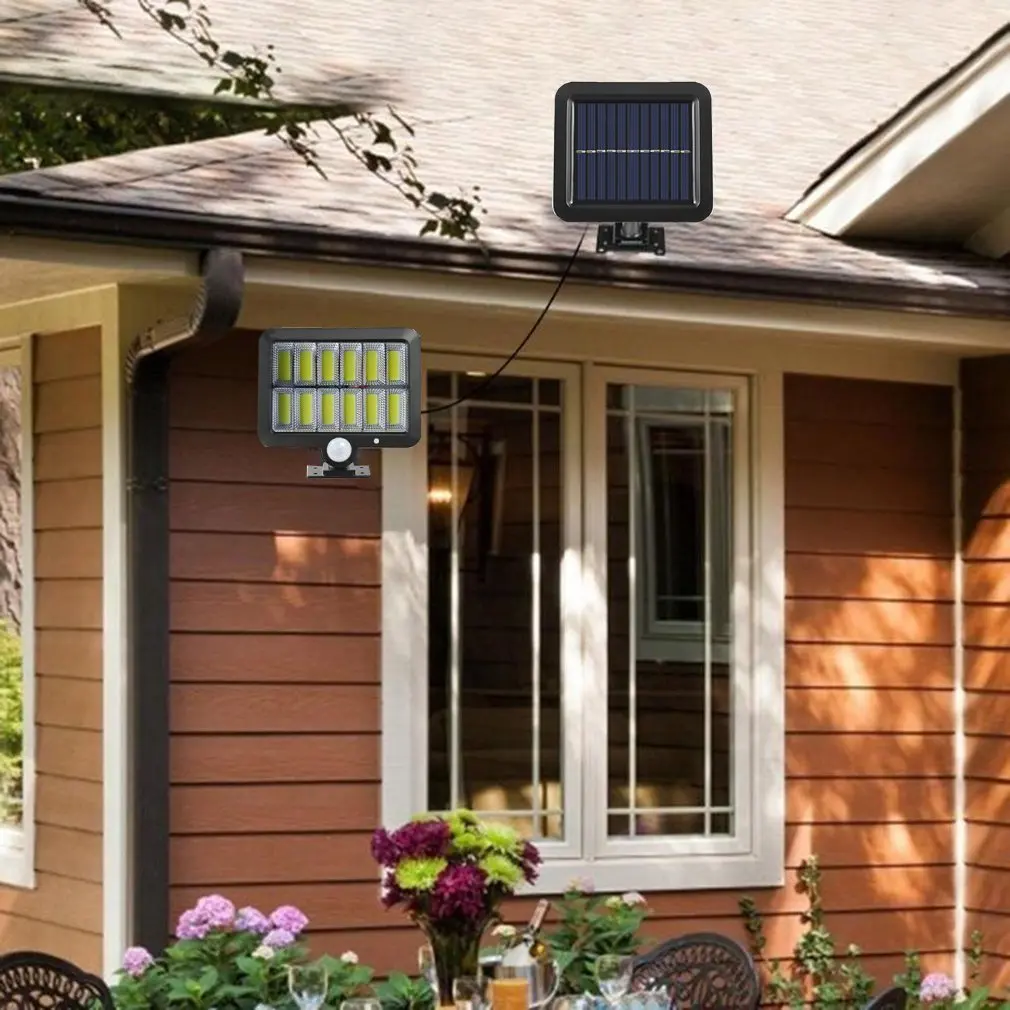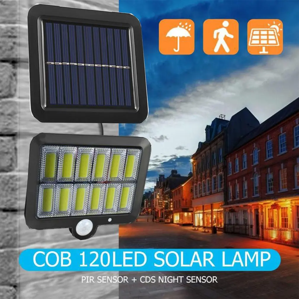 120 COB Солнечный светодиодный уличный светильник, водонепроницаемый PIR датчик движения, умный пульт дистанционного управления, уличный садовый настенный светильник