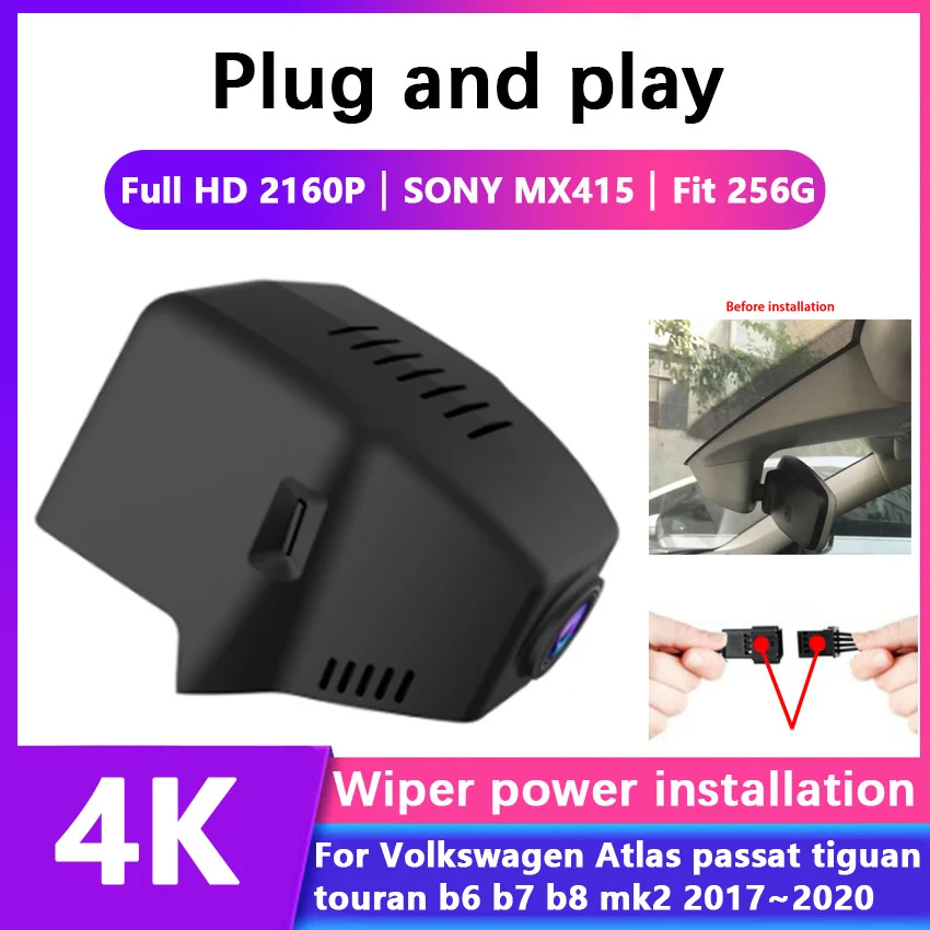 Видеорегистратор автомобильный 4K, Wi-Fi, для Volkswagen Atlas passat tiguan touran b6 b7 b8 mk2 2017 2020