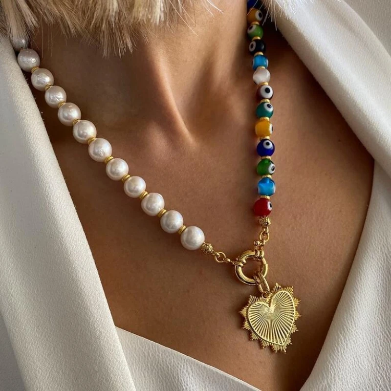 2021 новые творческие boho barok жемчуг сглаза бисером металлическое сердце-подвеска колье-ошейник jewelrywomen bijoux (украшения своими руками) в виде толстой цепочки подвески
