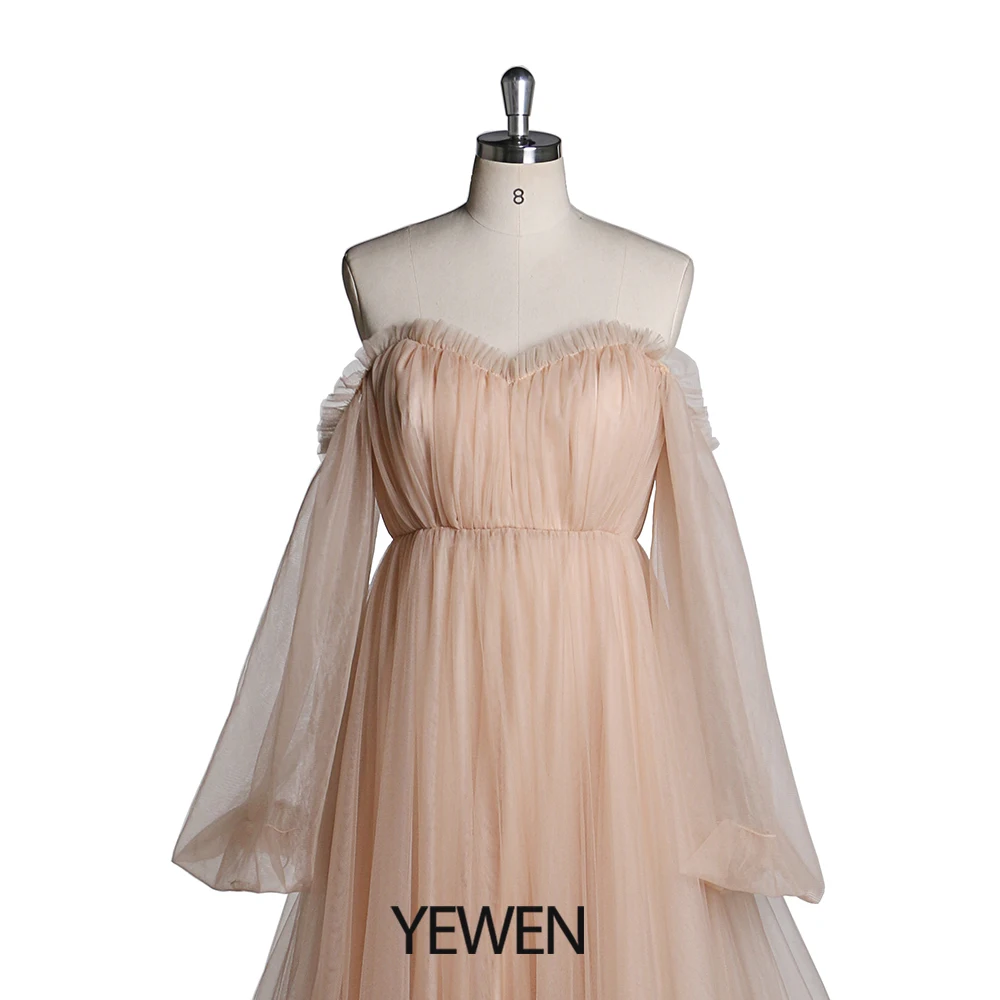 60 см поезд для беременных с длинными рукавами, наряды для студийной съёмки с открытыми плечами платье трапециевидной формы вечерние макси платья YEWEN фотографии платья