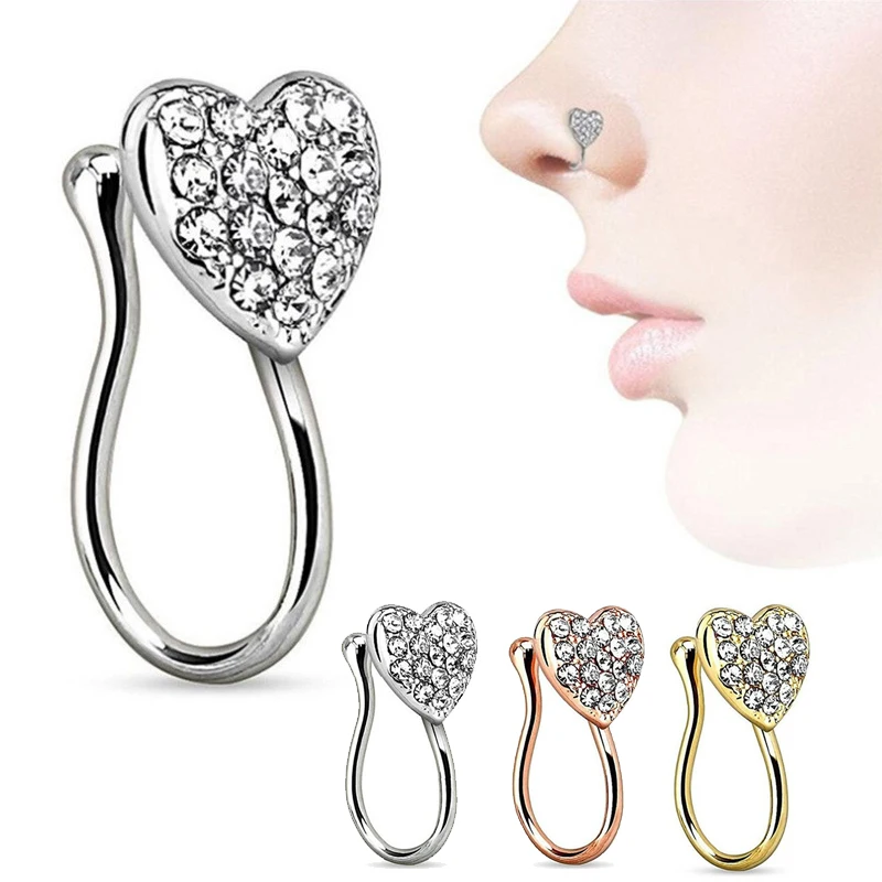 1 шт Нержавеющаясталь сердце изделие псевдо зажим на нос кольцо звезда фальшивый нос пирсинг клип на крест фальшивая клипса для носа искусственная пирсинг ювелирные изделия