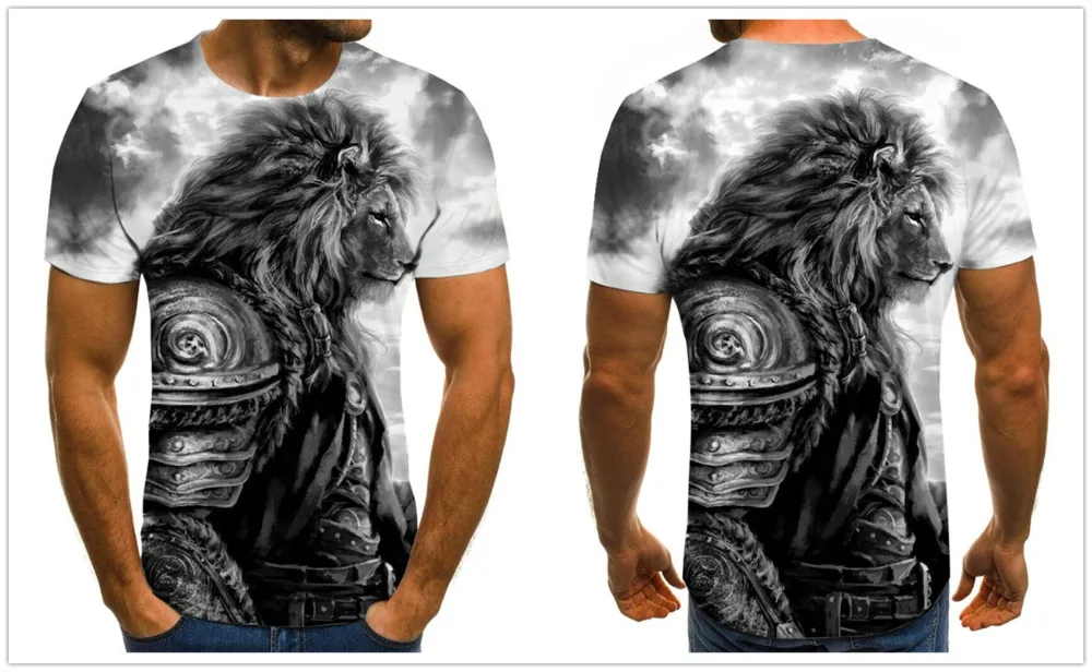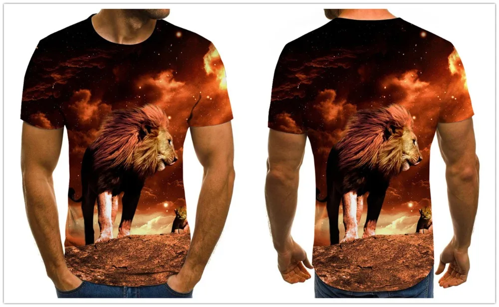 Футболка мужская с 3D-принтом льва и тигра, Повседневная рубашка в ...