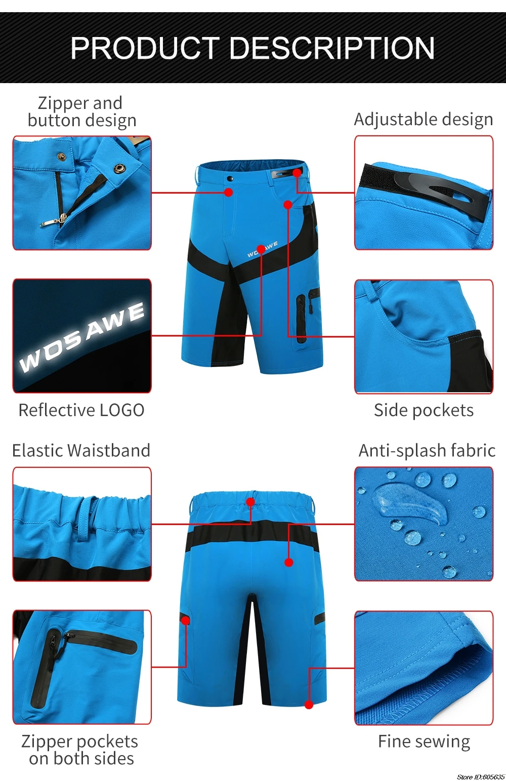 Мужские мешковатые велосипедные шорты WOSAWE с подкладкой, Светоотражающие Брюки для горного велосипеда, велосипедные свободные шорты с регулируемой талией
