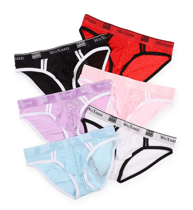 Трусы мужские кружевные, прозрачные, дышащие, с U-образным мешочком
