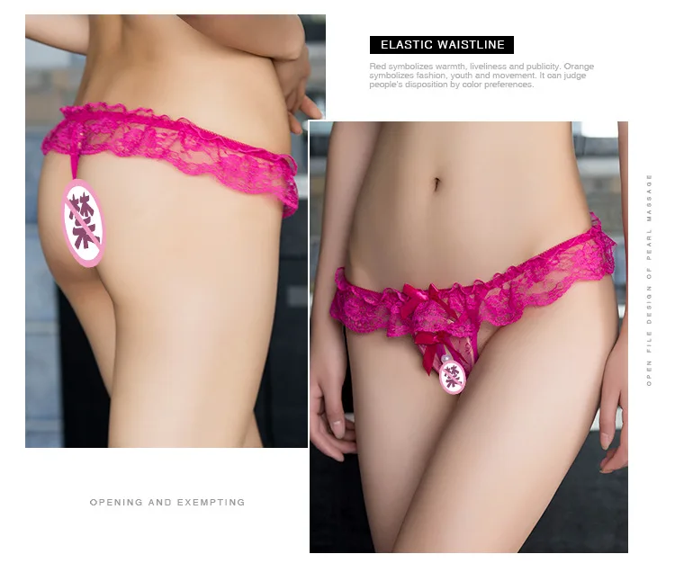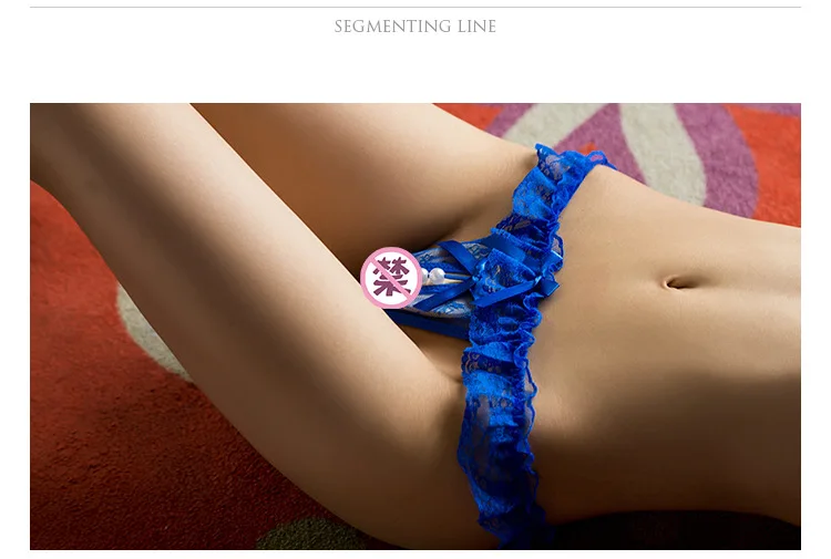 Сексуальные женские кружевные трусики-танга с жемчужной промежность...