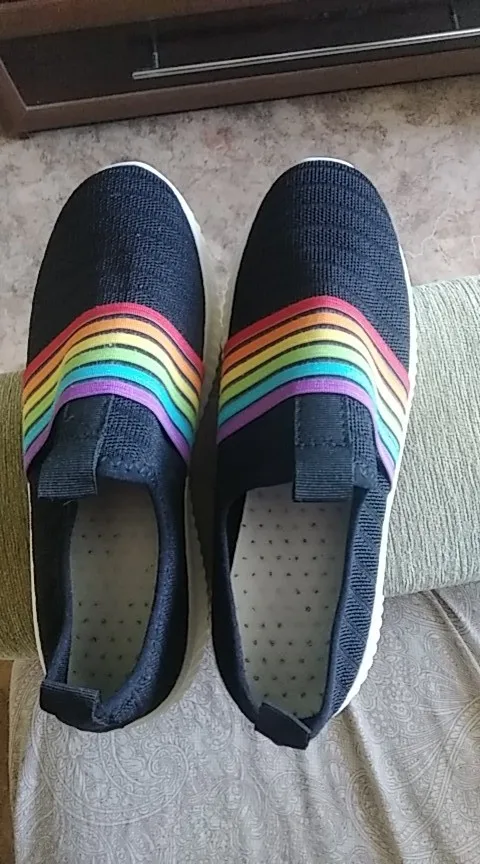 Спасибо!Быстрая доставка,кроссы легкие,яркие,аккуратные.Оказались чуть большеваты и на мою узкую ногу свободно.Больше-- не меньше,я довольна.Цвет сочный,полоски разного цвета.Под любую одежду подойдет.