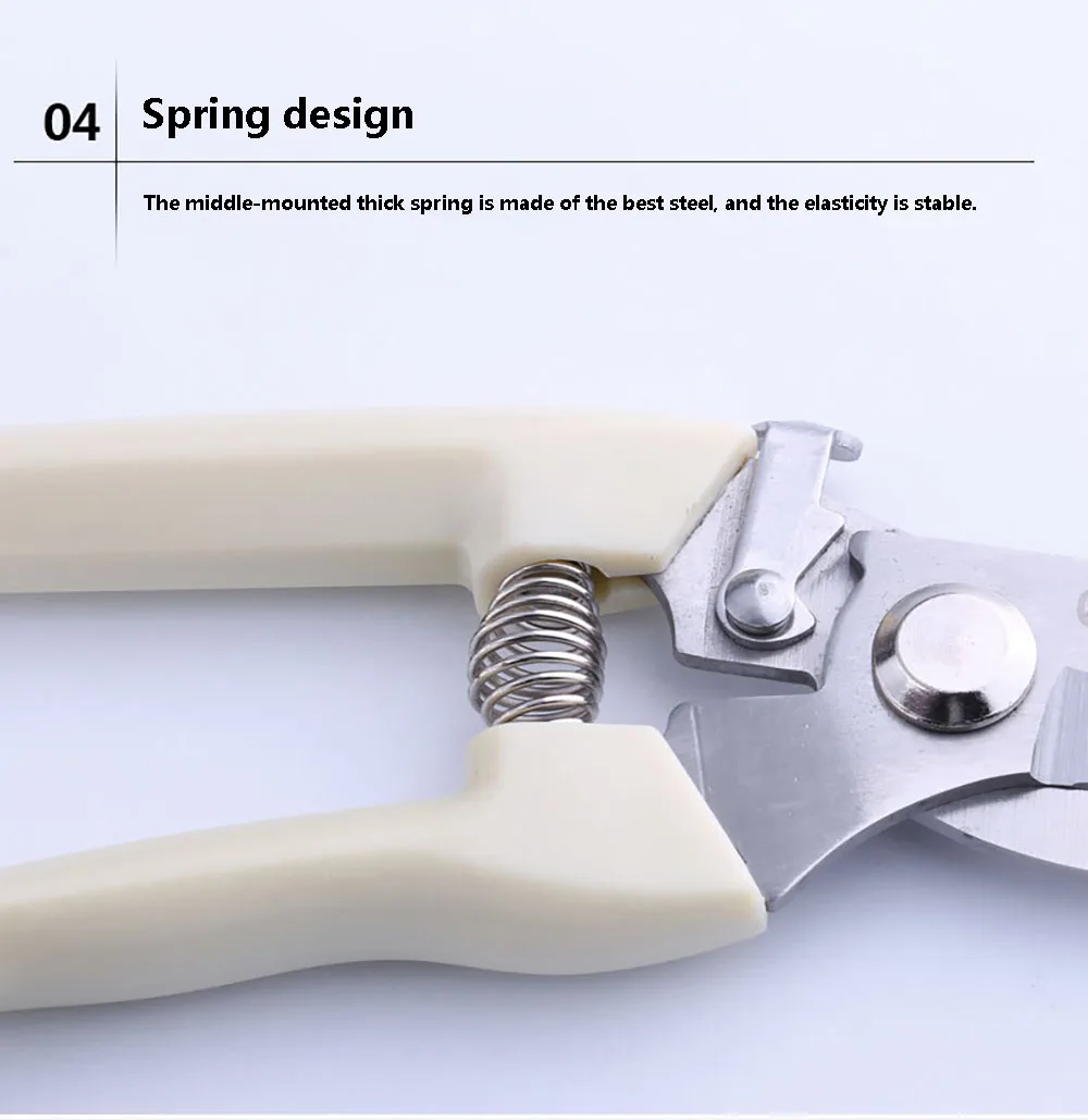 Механический дизайн золотой угол лезвия, Максимальный наклон значение диаметром до 1,8 смОсновная пружина легкая и экономичная, ее легко резать произвольноЕсть усиленный весенний помощник, легкий и трудосберегающий, чтобы сократить по желаниюС предохранительным клапаном, прост в использовании, безопасен во время холостого ходаПП пластик + нержавеющая сталь, износостойкие, острые и жесткие