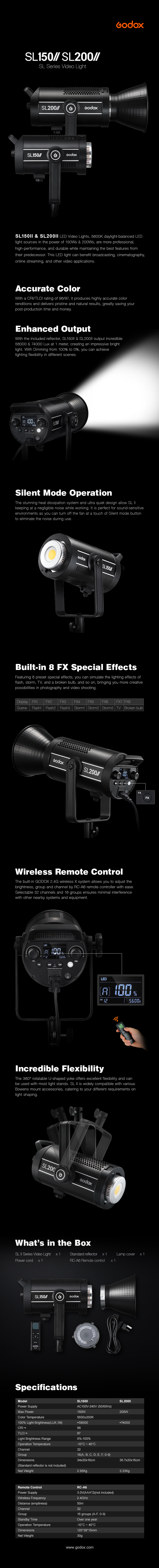 Godox SL150II SL150W II LED светильник 32 канала лампа дневсветильник свет для Canon Sony Фотостудия Youtube PK Aputure 300Dii