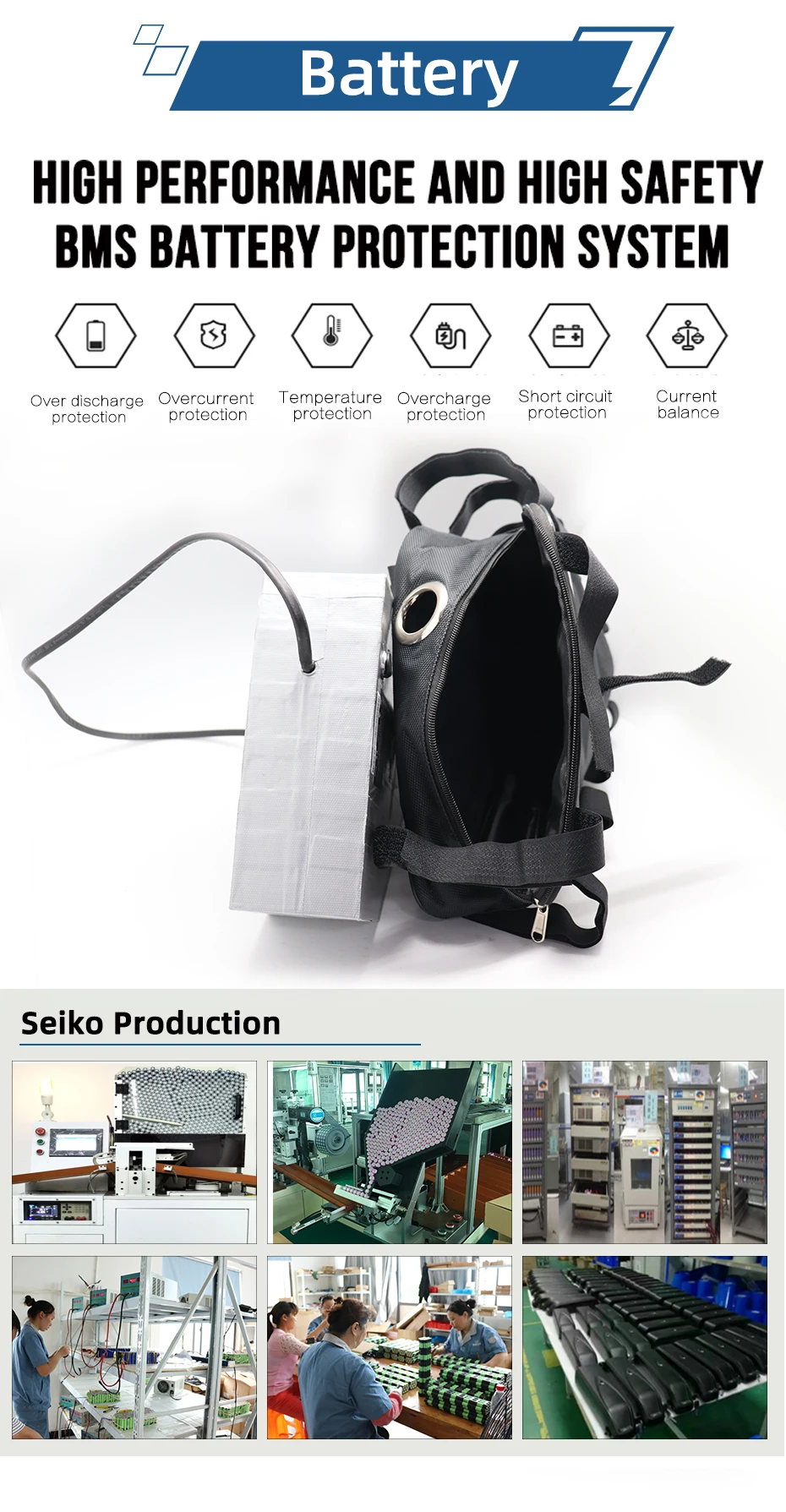 Набор преобразования электрического велосипеда принимает треугольную батарею, высокую производительность и высокую безопасность BMS системы защиты батареи.