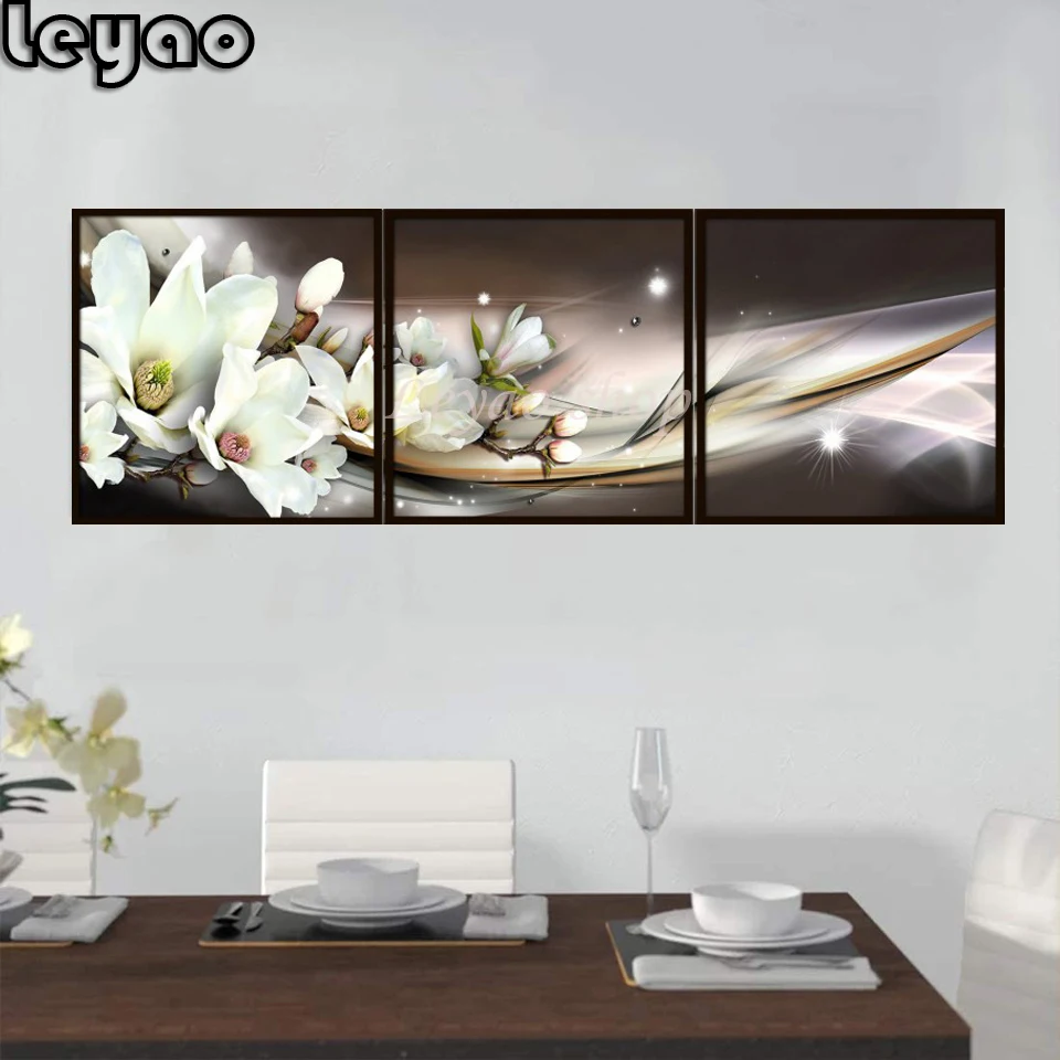 5D DIY алмазная живопись Триптих белая Магнолия полная квадратная Алмазная вышивка крестиком Стразы картинки Мозаика Декор