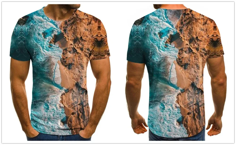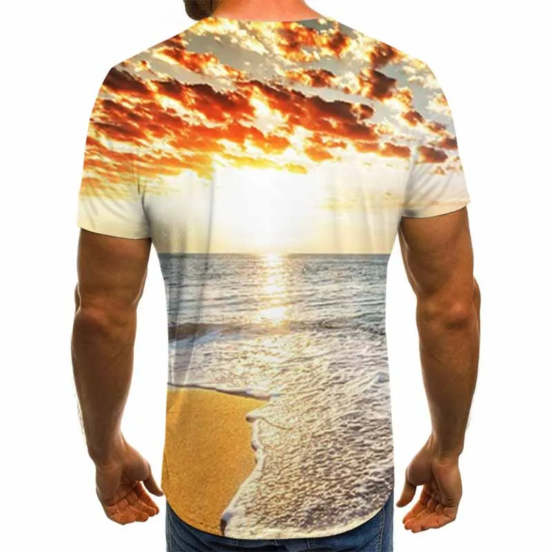 Гаваи пляж Мужская футболка 3D футболка с графикой Повседневная Harajuku топы Летняя мода Круглый воротник рубашки размера плюс, уличная одежда