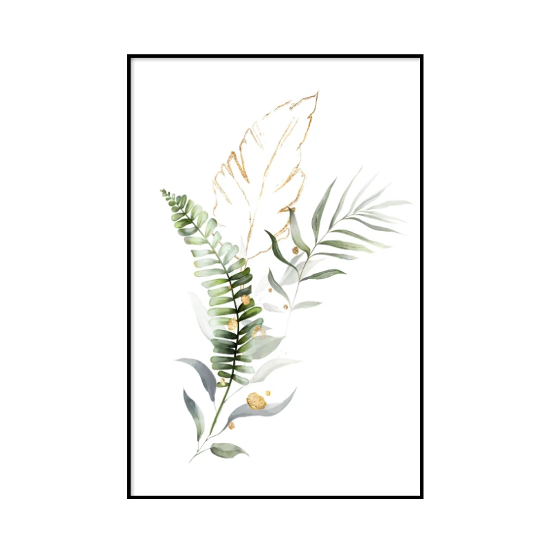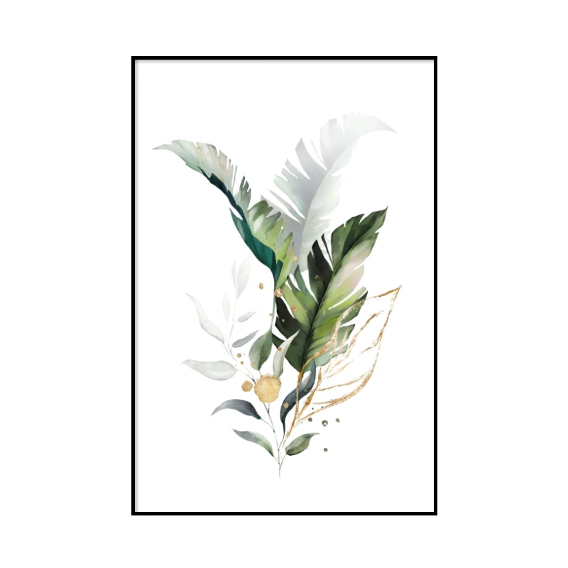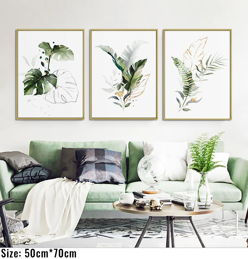 Скандинавские абстрактные постеры с золотыми и зелеными листьями акварелью, Картина на холсте, настенные художественные принты, картина для гостиной, интерьер, домашний декор