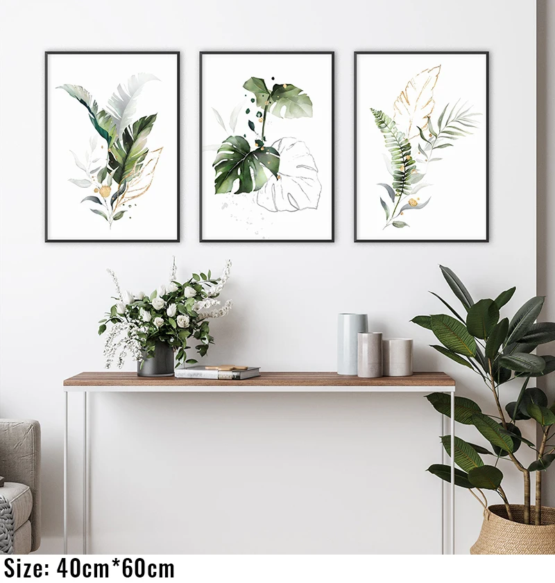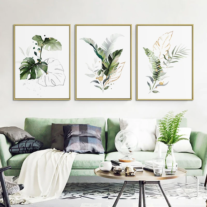 Настенная картина с зелеными листьями, простой постер на холсте в с...