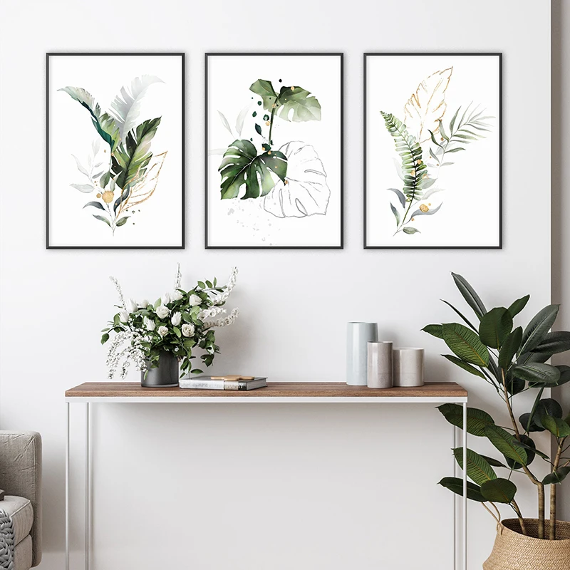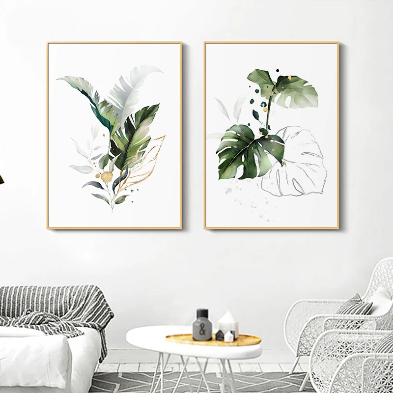 Настенная Картина на холсте с акварельными листьями, постеры и прин...
