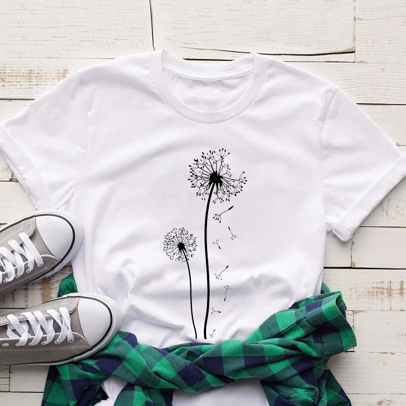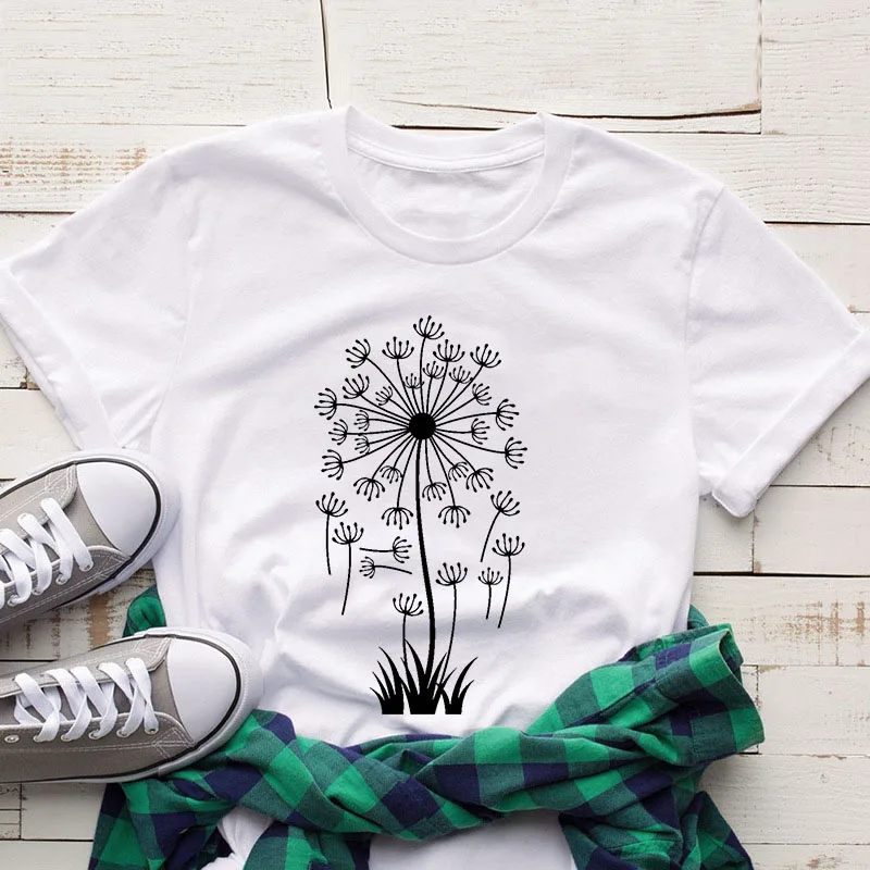 Женская футболка, принт в виде одуванчиков, свободный полет платье-...