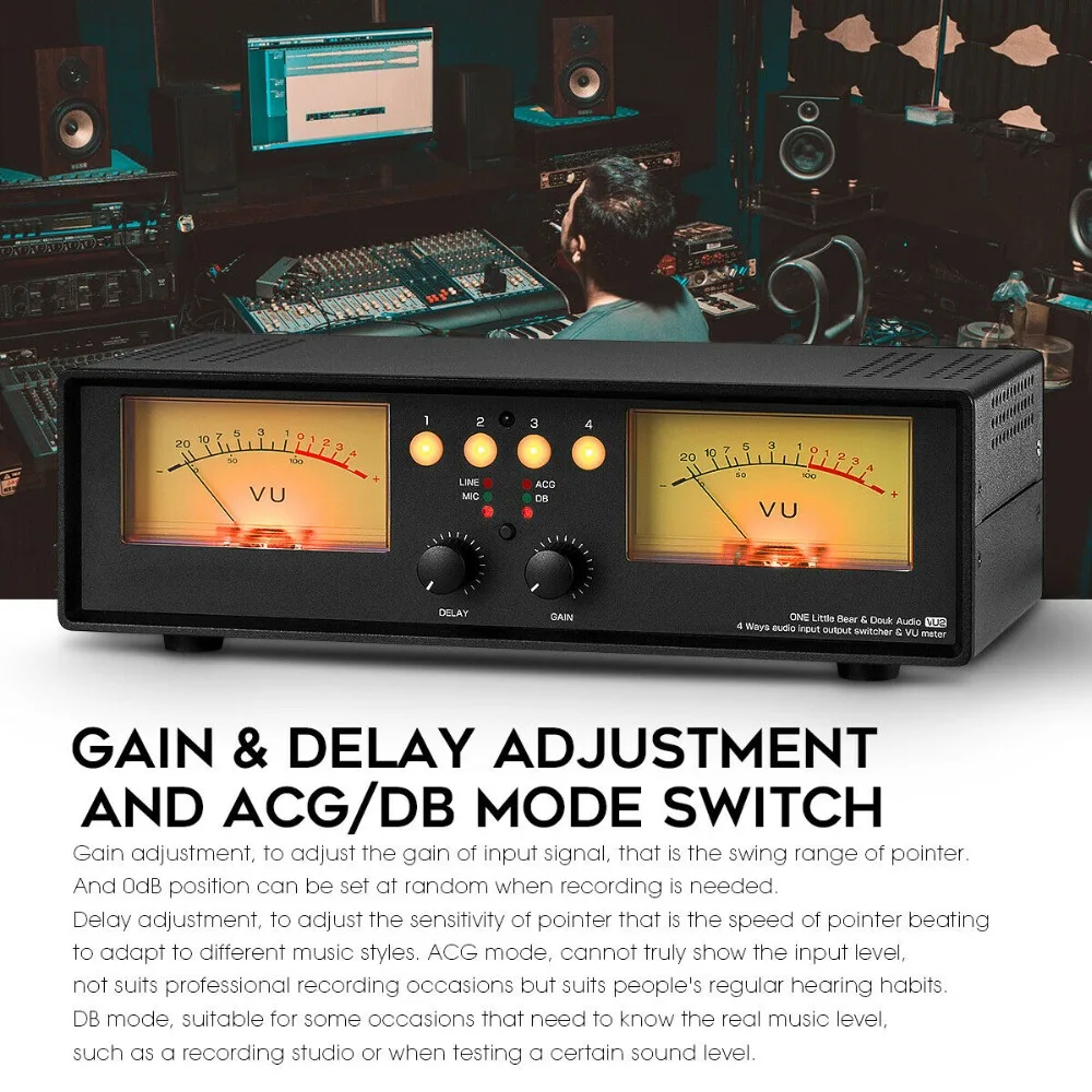 Douk аудио 4-полосный двойной аналоговый УФ-измеритель, панель дБ, измеритель уровня звука, сплиттер, переключатель, анализатор спектра музыки в коробке