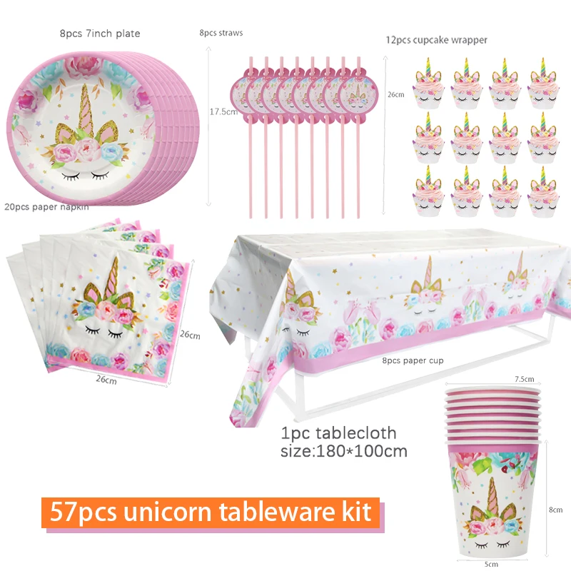 57 шт., единорог, товары для вечеринки на день рождения, для девочек, украшение на день рождения, одноразовый набор посуды, бумажные стаканчики, 7 дюймов, тарелки для детского душа, Deco