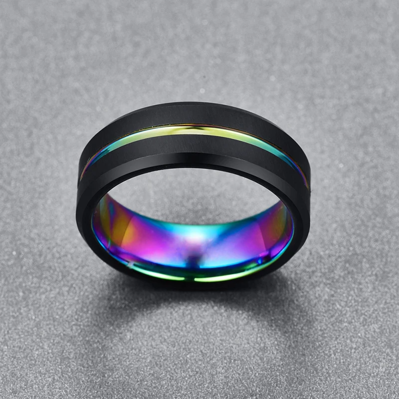 8 мм модные нержавеющая сталь кольца из нержавеющей стали для Классическая цветная внутренняя плакировка рифленая мужские кольца вечерние свадебные ювелирные аксессуары