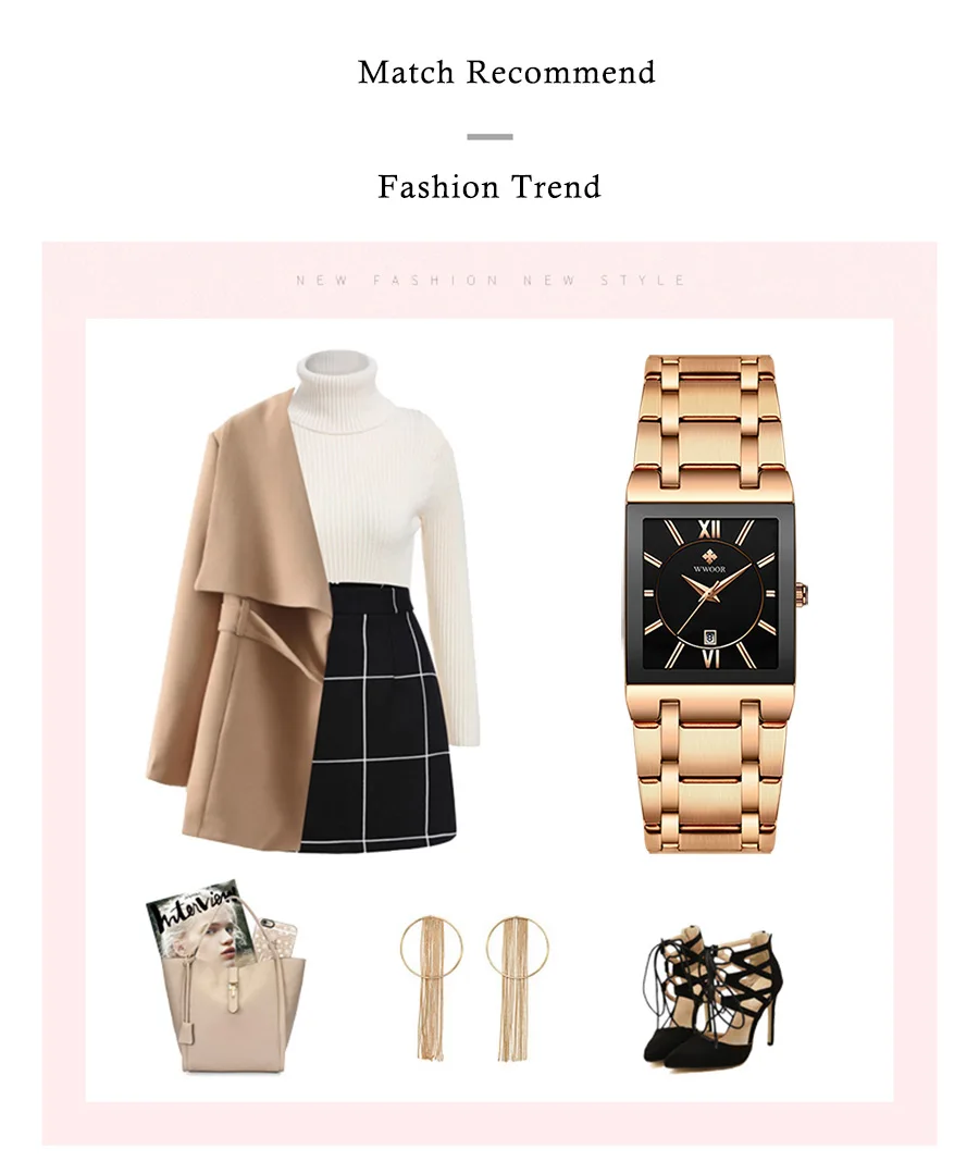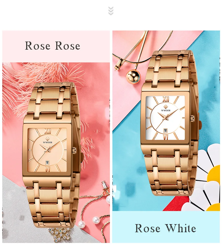 Часы женские WWOOR, квадратные, под розовое золото, с браслетом