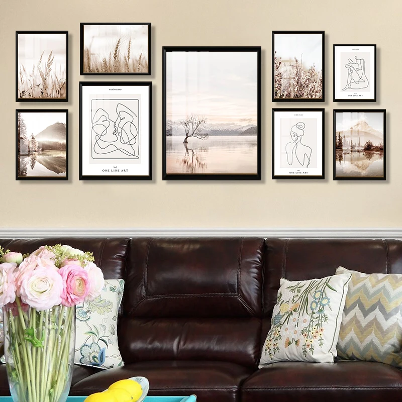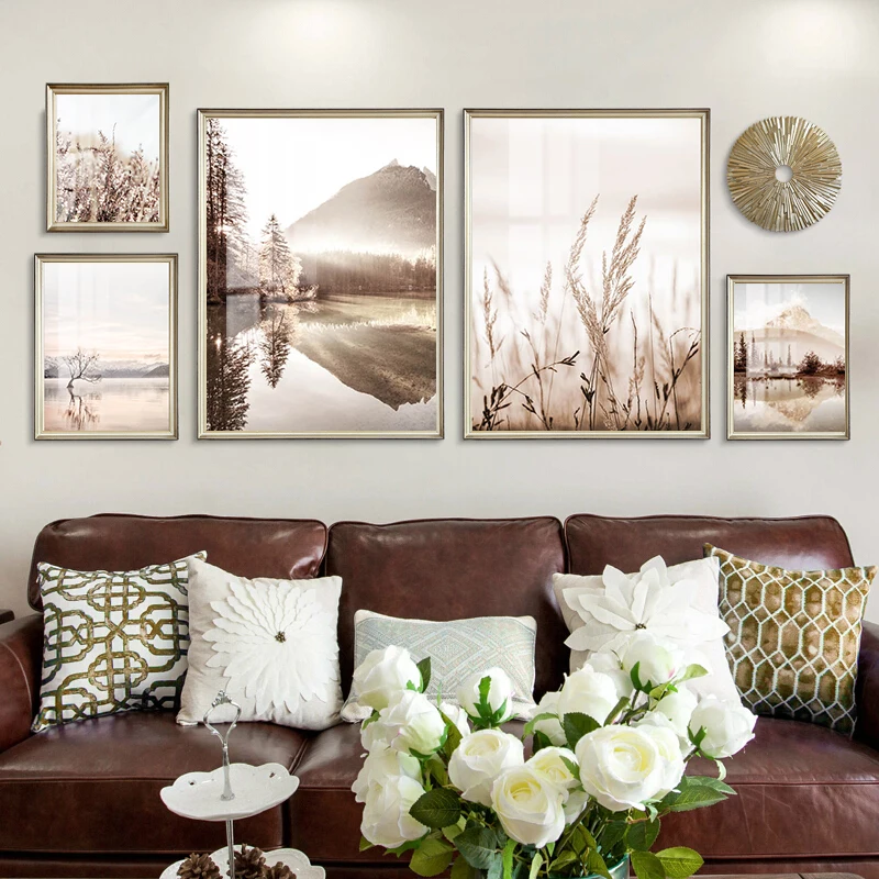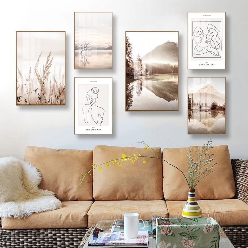 Настенные постеры с изображением морей и гор для гостиной, украшение в современное время для спальни, с теплым цветом, домашний декор