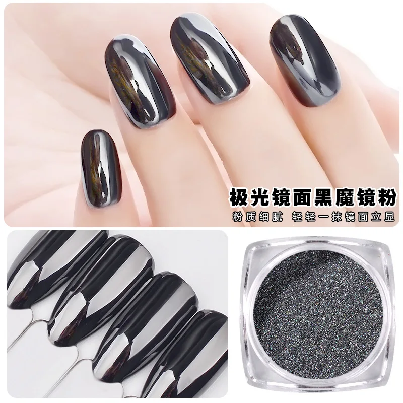 Волшебный зеркальный черный блестящий порошок для ногтей, супер гладкая Пыль для дизайна ногтей, маникюра, украшения для ногтей 1 гкор.